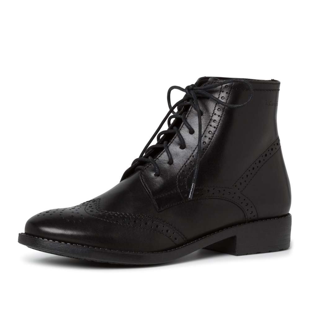 Kotníková obuv s imitací perforace v černé barvě, značky TAMARIS.