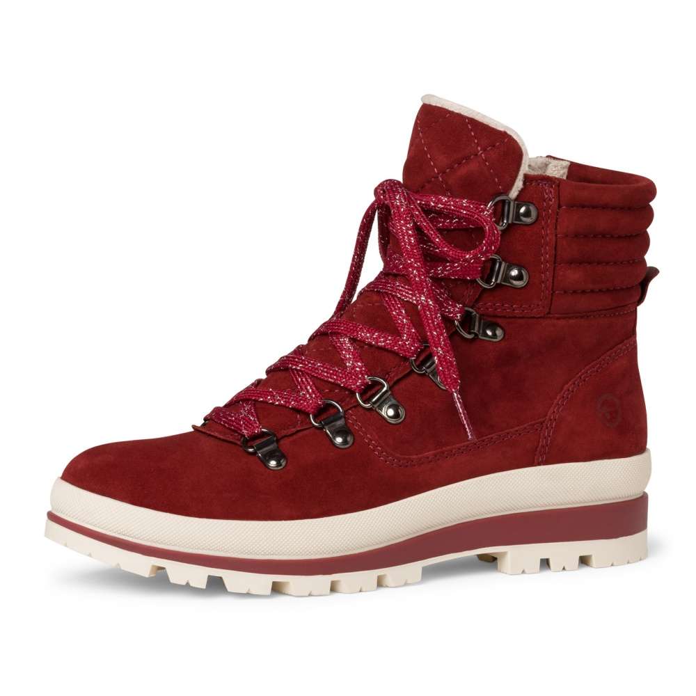 Kožená kotníková obuv vínové barvy, značky TAMARIS.
