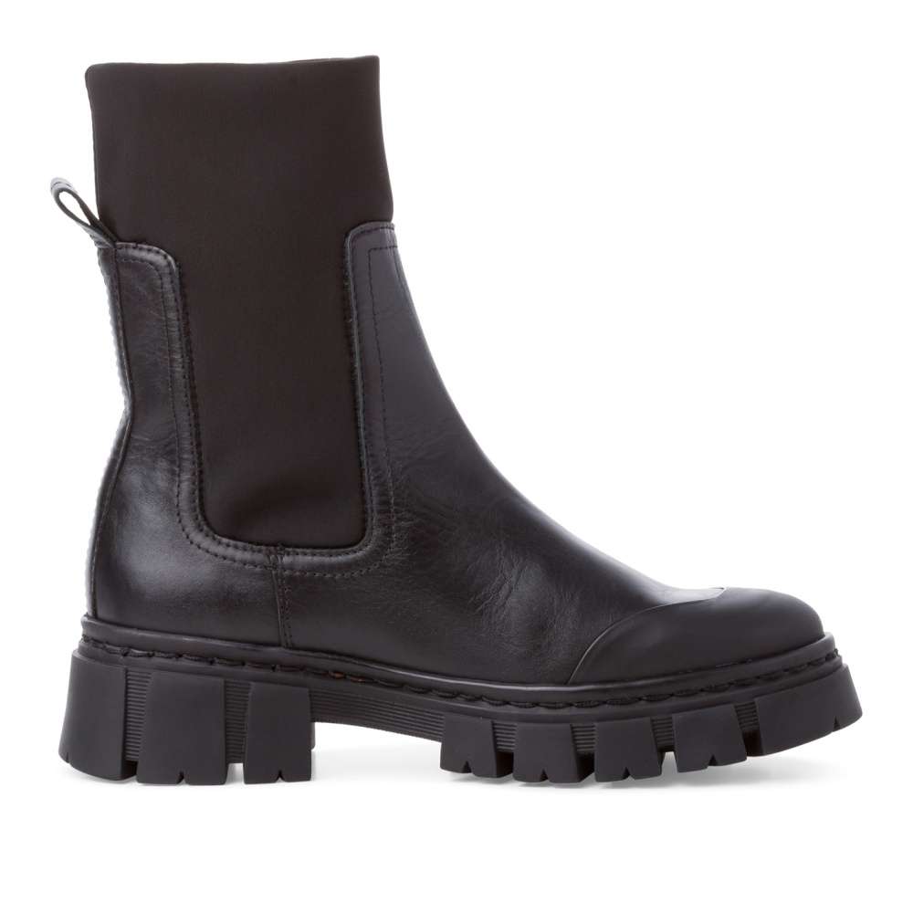 Zde máme pro Vás parádní kotníkovou botu. Tento jednoduchý, a přitom výrazný model Vám nesmí chybět v botníku. Hladký kožený svršek je doplněný o pružný materiál v horní části pro snadné obutí i přizpůsobení noze.