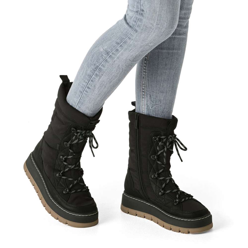 Objevte boty, které vám poskytnou více než jen základní komfort. Tyto kotníkové boty značky Tamaris spojují moderní vzhled s praktickými prvky, díky nimž se stanou vaším oblíbeným společníkem pro chladné dny. Na první pohled zaujme černý svršek s rafinovanou kombinací materiálů, které dodávají botám originální charakter. Nápadité šněrování podtrhuje celkový design a je pouze vizuální dekorací. Pro rychlé a pohodlné nazouvání je tu praktický boční zip – ideální detail pro ženy, které oceňují funkčnost i v každodenním shonu. Vaše nohy si zaslouží pohodlí, a proto je tento model vybavený měkkou stélkou, která zajistí příjemný pocit i při delším nošení. Vyšší stabilní podešev v trendy provedení nejen podtrhuje celkový vzhled, ale také vám dodá jistotu při každém kroku. Protože styl by neměl ustupovat ani nepřízni počasí, Tamaris vsadil na funkční prvky, boty jsou opatřeny nepromokavou membránou a hřejivým zateplením, takže vás spolehlivě ochrání před chladem i vlhkem. Ať už vyrazíte do města, do práce, nebo na zimní procházku, s tímto modelem budete vždy vypadat stylově – a hlavně se budete cítit skvěle. Technologie: Touch-it – měkká stélka, která se dokonale přizpůsobí tvaru nohy, a díky tomu při nošení zajišťuje optimální pohodlí. DuoTex - obuv s membránou DUOtex je nepromokavá a přesto prodyšná. Díky ní jsou nohy v příjemném klimatu při dešti, ve větru i sněhu.