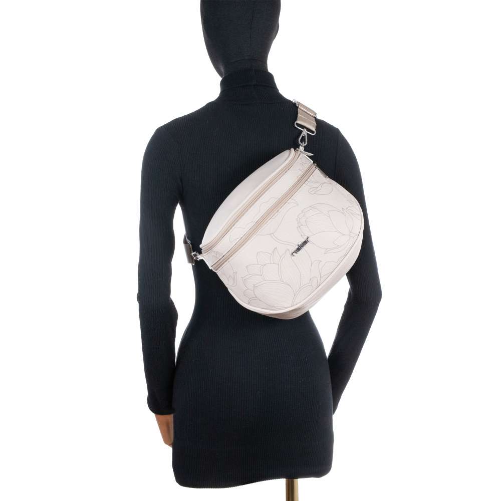Tato ledvinka RIEKER je ideální volbou pro ženy, které chtějí mít vše potřebné po ruce a zároveň si zachovat stylový vzhled. Béžový svršek zdobí unikátní vzor květin, který jí dodává osobitý charakter a stříbrné logo značky dodává kabelce punc originality. Hlavní prostor uzavíraný zipem poskytuje dostatek místa pro všechny vaše každodenní nezbytnosti, přičemž vnitřní kapsička umožňuje lepší organizaci menších předmětů. Přední menší kapsička a zadní kapsa s rychlým přístupem zvyšují funkčnost, takže drobnosti budete mít vždy po ruce a bezpečně uloženy. Odepínatelný a délkově nastavitelný popruh umožňuje variabilní nošení – přes rameno nebo přes tělo – podle vašich potřeb a aktuálního stylu. Díky své kombinaci módního vzhledu a praktických prvků je tato ledvinka RIEKER ideálním společníkem pro procházky městem, cestování či volnočasové aktivity.