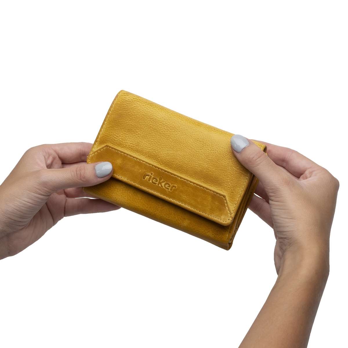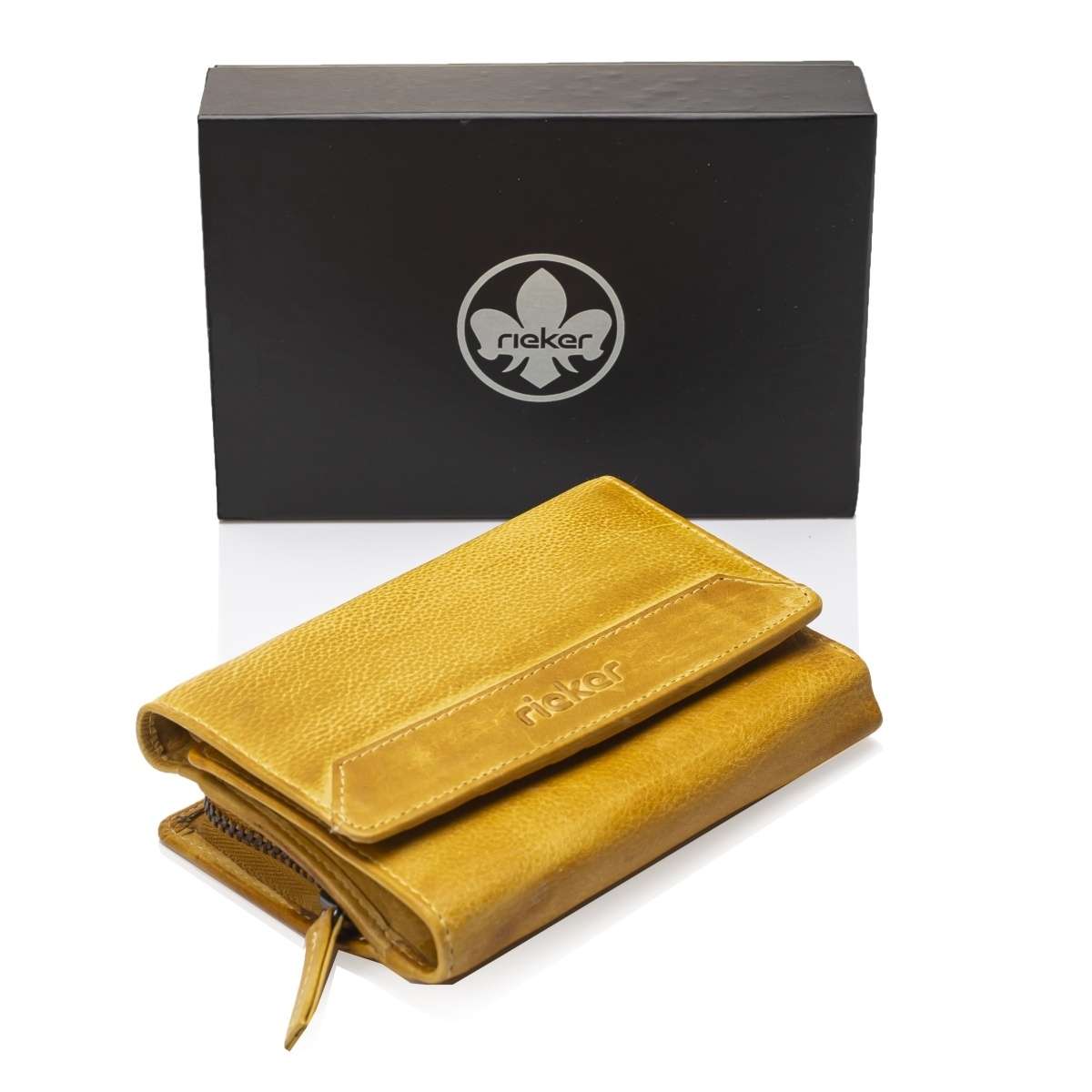 Tato jedinečná peněženka značky RIEKER bude pro Vás dokonalým doplňkem. Svršek peněženky vyrobený z kvalitní hovězí kůže je na přední straně ozdoben jemně vytlačeným názvem značky. Peněženka je rozdělena na dvě části. Část uzavíratelná cvočkem má jedenáct kapsiček na karty, kapsičku s folií na fotky, tři postranní skryté kapsy a dvě podlouhlé na papírové peníze. Kapsa uzavíratelná zipem je rozdělena na dvě části a vhodná třeba na drobné peníze. Tato peněženka bude skvělým doplňkem nejen k obuvi, ale i ke kabelkám z naší nabídky.