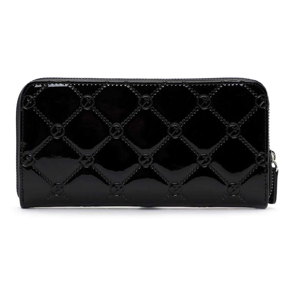 Tuto elegantní lesklou peněženku Tamaris si zamilujete na první pohled. Svršek v černé anebo červené variantě je designově zdoben vytlačeným vzorem s drobnými logy značky. Na přední straně se nachází efektní štítek s nápisem Tamaris. Peněženka je uzavíratelná na zip, po jehož otevření naleznete několik přihrádek na bankovky, karty a kapsičku na drobné mince. Tento model dokonale sladíte s kabelkou ze stejné kolekce, nabízenou na našem e-shopu. Rozměry: 10 x 20 cm