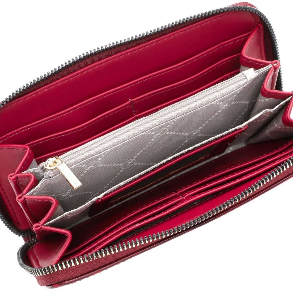 Krásny dizajn této peněženky Tamaris zaujme vzorem s hadím motivem a zdobným logem značky. K zapínání slouží zip a po jeho rozepnutí uvnitř najdeme praktické kapsičky na karty, papírové peníze a kapsu uzavíratelnou zipem, vhodnou například na drobné mince. Tato peněženka bude skvělým doplňkem nejen k obuvi, ale také ke kabelkám z naší nabídky.