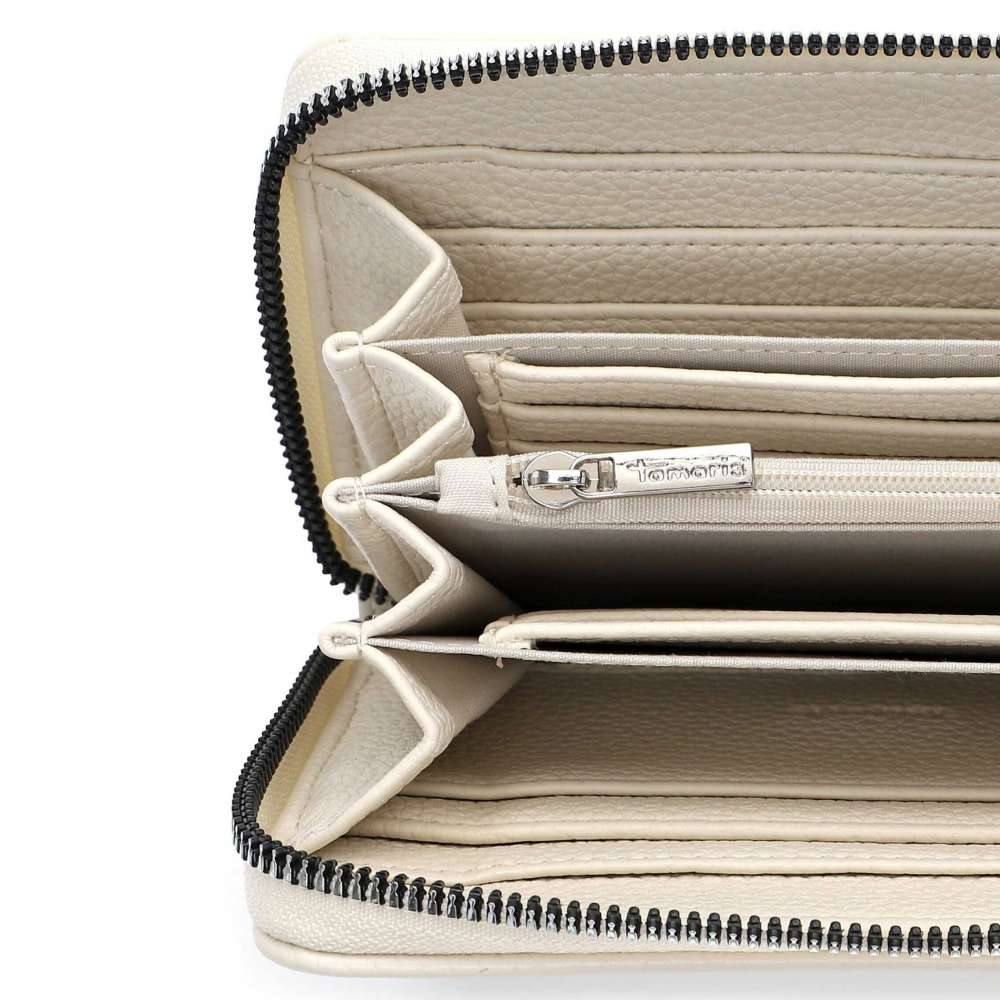 Dámská peněženka Tamaris v béžové barvě je ideálním doplňkem pro všechny ženy, které si potrpí na vkusné a zároveň funkční detaily. Logo značky Tamaris na přední straně podtrhuje originální charakter a dodává celému modelu sofistikovaný vzhled. Peněženka je vybavena praktickým zipem, který zajistí bezpečné uzavření a ochranu všech vašich cenností. Uvnitř naleznete dobře členěný prostor s přihrádkami na platební karty, bankovky i doklady, a samozřejmě také samostatnou kapsičku na mince uzavíratelnou zipem. Díky přehlednému uspořádání budete mít vždy dokonalý pořádek a vše po ruce. Tento model kombinuje jednoduchý, čistý design s vysokou praktičností, takže jej oceníte při každodenním používání. Peněženka Tamaris je spolehlivou volbou pro každou moderní ženu, která hledá stylový doplněk s dlouhou životností a špetkou luxusu.