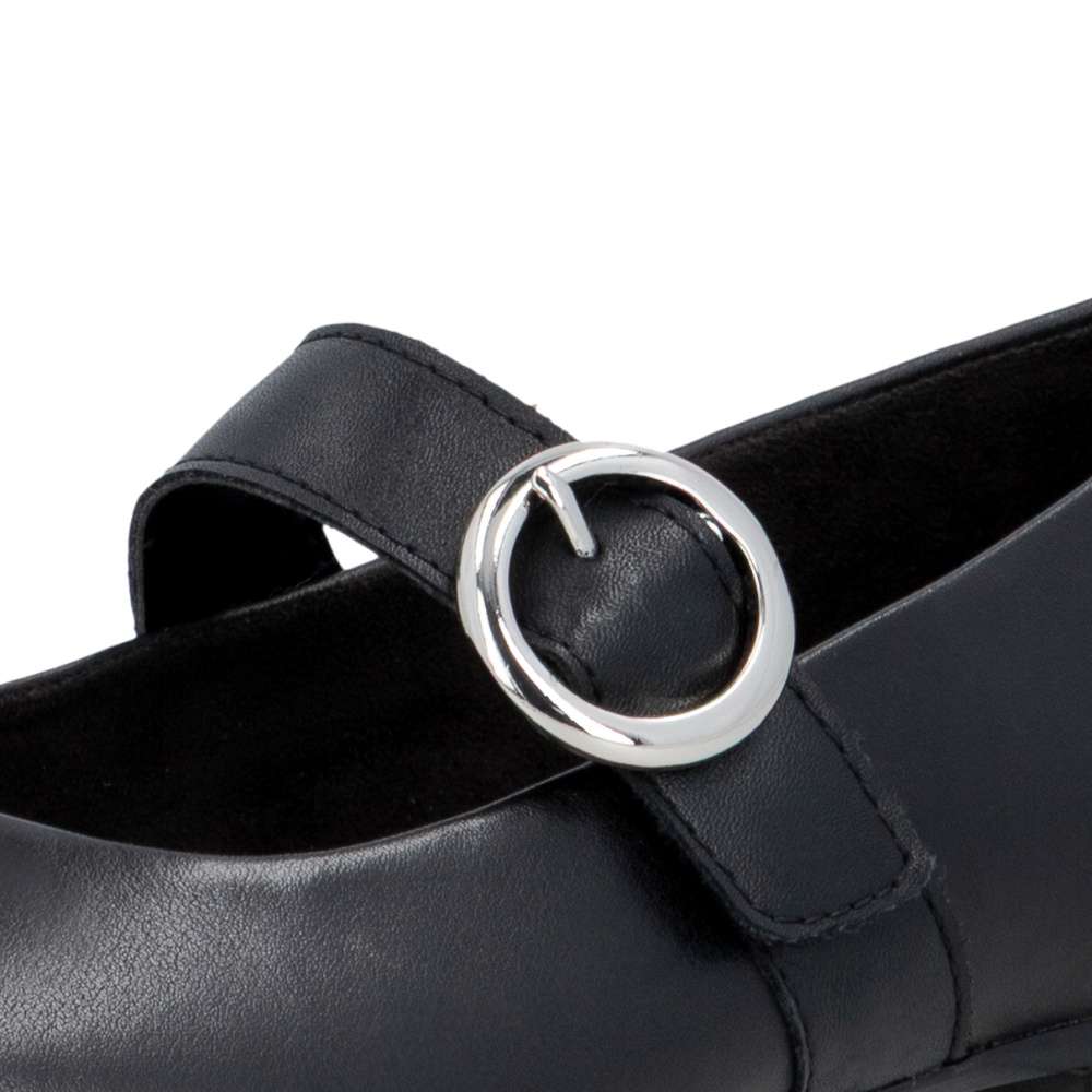 Obuv REMONTE představuje prémiovou řadu značky RIEKER, která se vyznačuje vysokou kvalitou použitých materiálů a precizním zpracováním. Univerzální design a kvalitní zpracování dělají z těchto balerín praktickou a stylovou volbu, která doplní váš šatník a podtrhne váš osobitý styl. Černý kožený svršek zdobený minimalistickým logem značky působí elegantně a univerzálně, díky čemuž se snadno kombinuje s různými outfity – od elegantních šatů, přes kalhoty do práce, až po ležérní kombinace pro volný čas. Pásek přes nárt dekorovaný atraktivní sponou je opatřen suchým zipem, který umožňuje dokonalé přizpůsobení boty chodidlu a dodává modelu jemný, ženský detail. Kožená stélka je měkká, příjemná na dotek a poskytuje pohodlí i během celodenního nošení. Navíc je vyjímatelná, což umožňuje její snadnou údržbu nebo výměnu za ortopedickou stélku podle individuálních potřeb. Flexibilní podešev je navržena tak, aby umožnila přirozený pohyb chodidla a zajistila stabilitu při chůzi po různých površích. Tyto baleríny jsou ideálním společníkem pro každý den – ať už do práce, na nákupy, procházky nebo setkání s přáteli Technologie: Tato bota je vybavena vyjímatelnou stélkou.