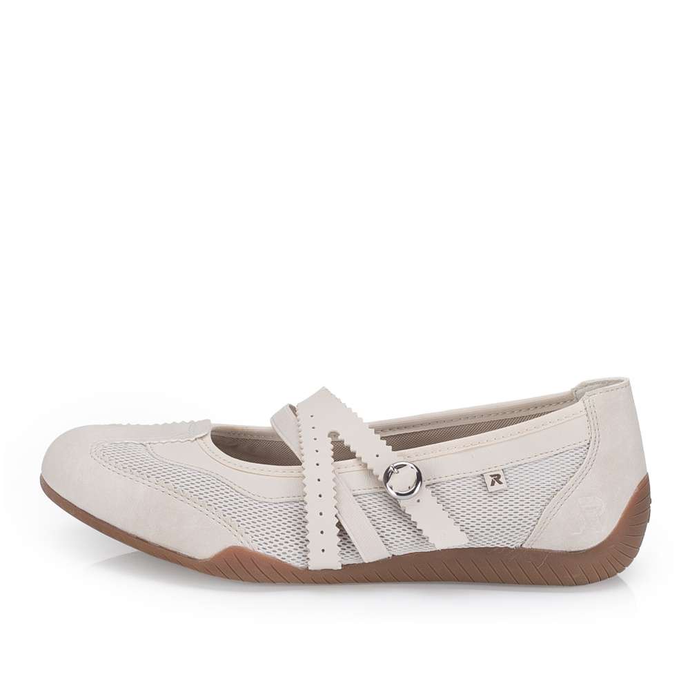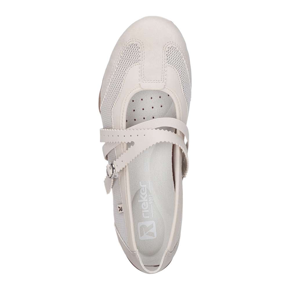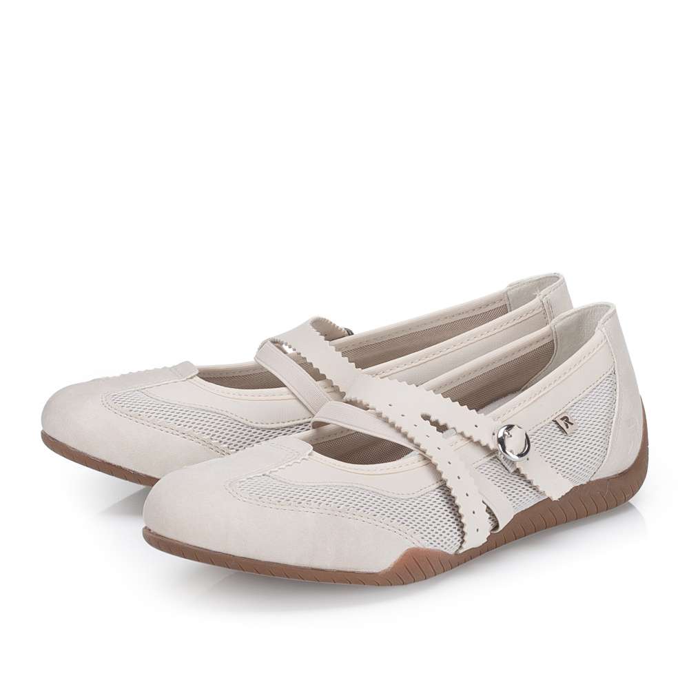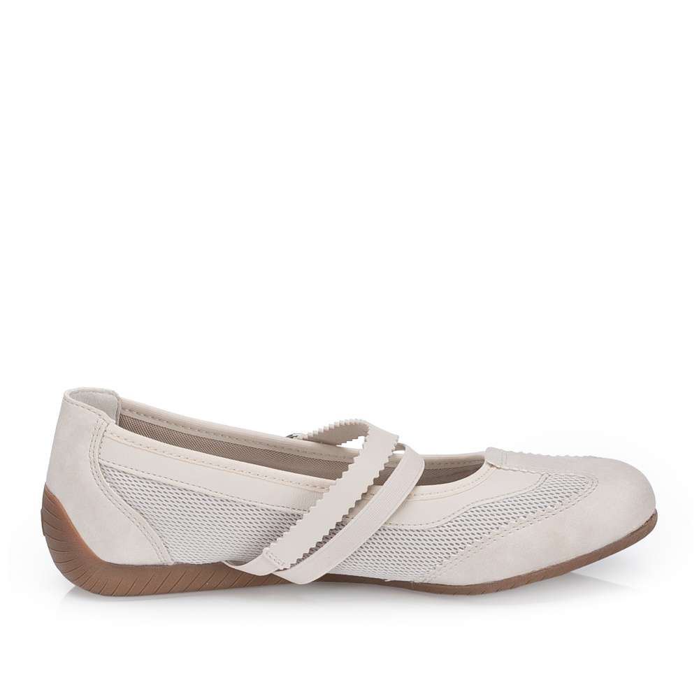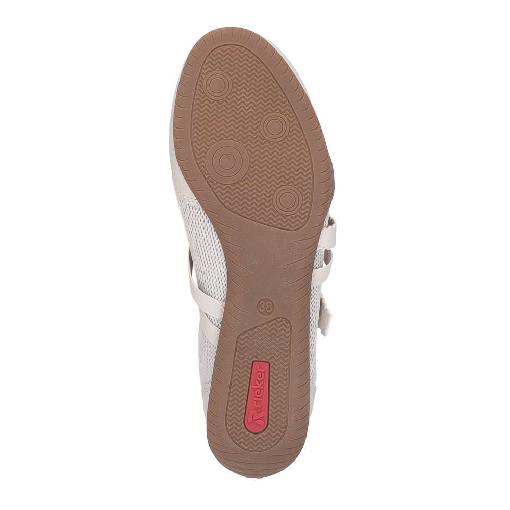 Dámské baleríny značky RIEKER Vás zaujmou svým originálním vzhledem. Svršek je nepřehlédnutelný svým zpracováním a kombinací materiálů. Pro snadné obutí a přizpůsobení se Vaší noze slouží pásky přes nárt, přičemž jeden z pásků má nastavitelnou sponu a jeden pružnou gumičku. Uvnitř vás překvapí vyjímatelná měkká stélka, která se přizpůsobí tvaru chodidla a zajistí maximální komfort na každém kroku. Podešev vybavená technologií Antistress se postará o pohodlí na každém kroku. Tento model je vhodný snad ke všem pracovním i běžným outfitům. Dokonalá souhra moderního vzhledu a maximálního pohodlí díky funkčním technologiím to jsou boty RIEKER Sport.