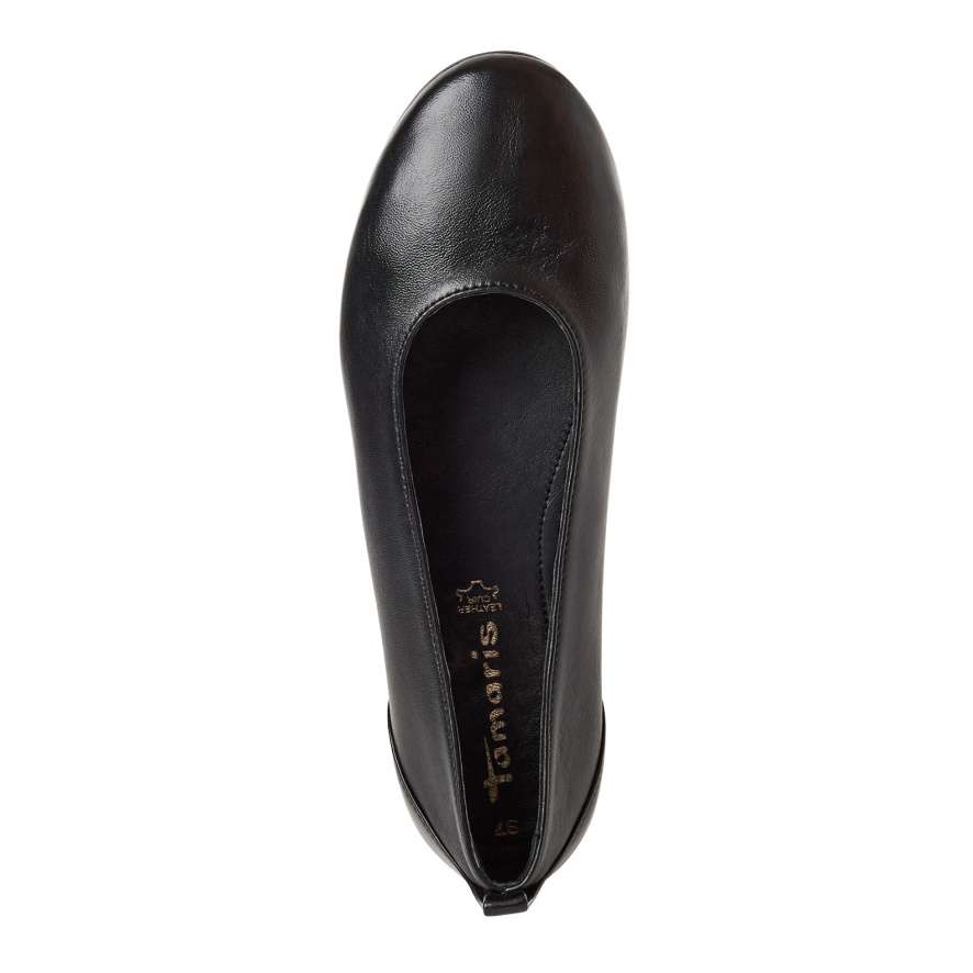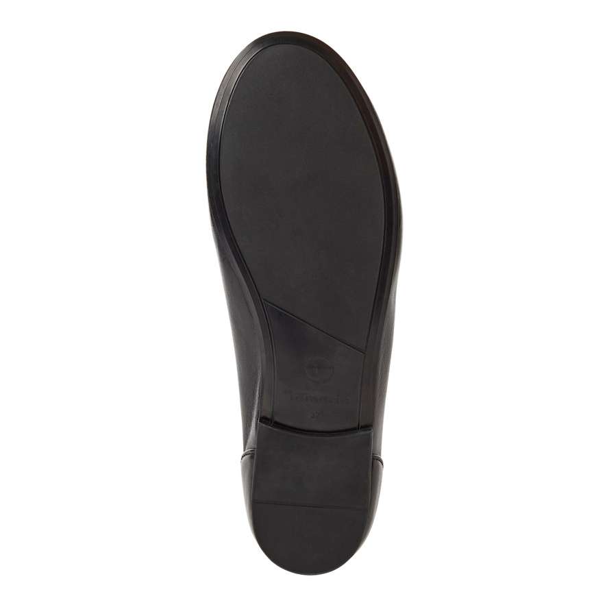 Tyto baleríny Tamaris představují ukázku decentního stylu a nadčasové elegance. Jejich černý kožený svršek v čistých liniích a se zaoblenou špičkou vytváří sofistikovaný a univerzální vzhled, který snadno doplní různé outfity – od každodenního nošení až po elegantnější příležitosti. Kožená stélka poskytuje přirozený komfort, zatímco flexibilní podešev zaručuje pohodlnou chůzi po celý den. Minimalistický design v kombinaci s kvalitním zpracováním činí tyto baleríny Tamaris ideální volbou pro ženy, které chtějí spojit eleganci, komfort a praktičnost v jednom modelu.