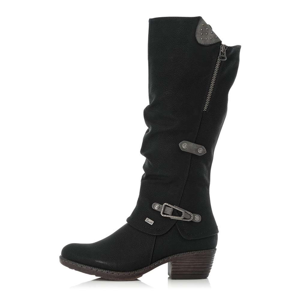 Dámské kozačky černé barvy se stříbrným zdobením, značky RIEKER.