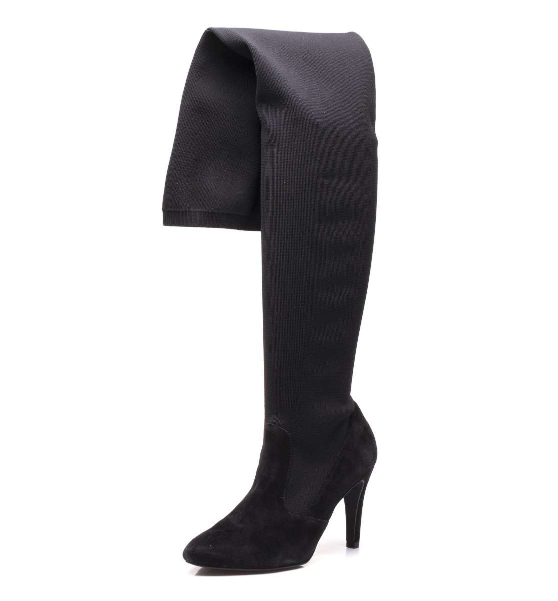 Dámská černá kozačka nad kolena od módního návrháře Marcela Ostertaga, značky TAMARIS.