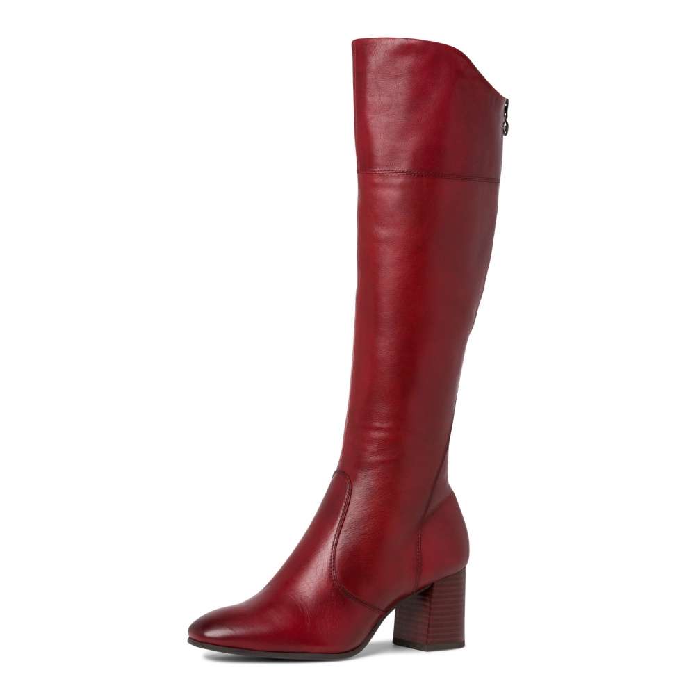 Krásné červené kozačky z pravé kůže, značky TAMARIS.