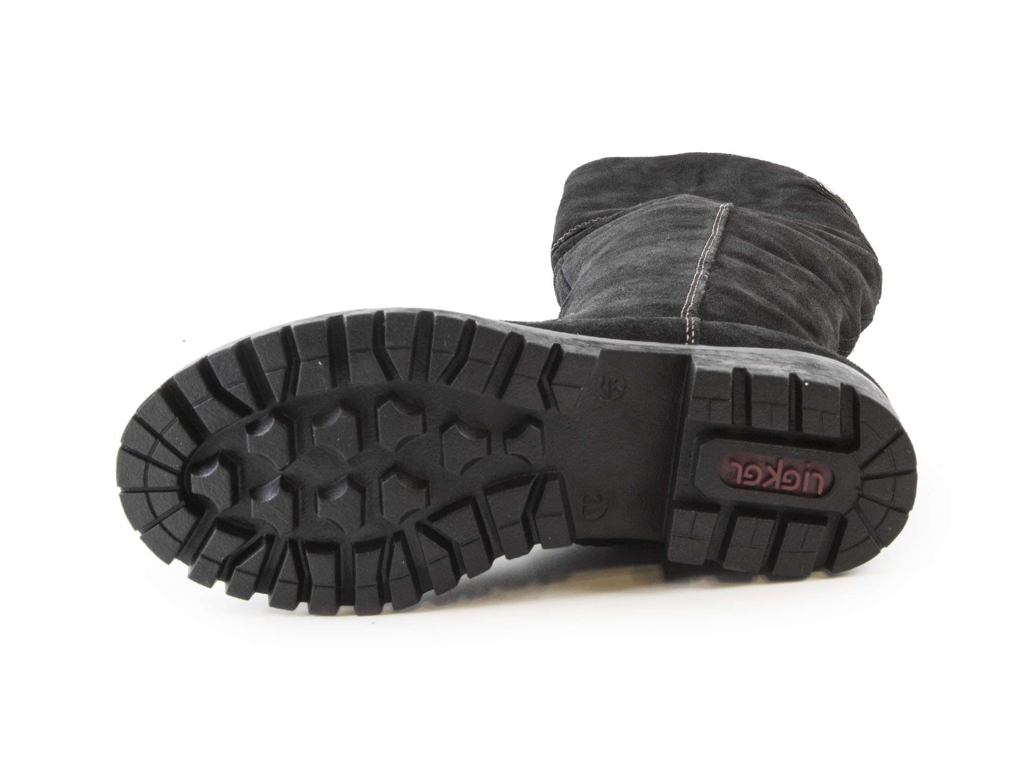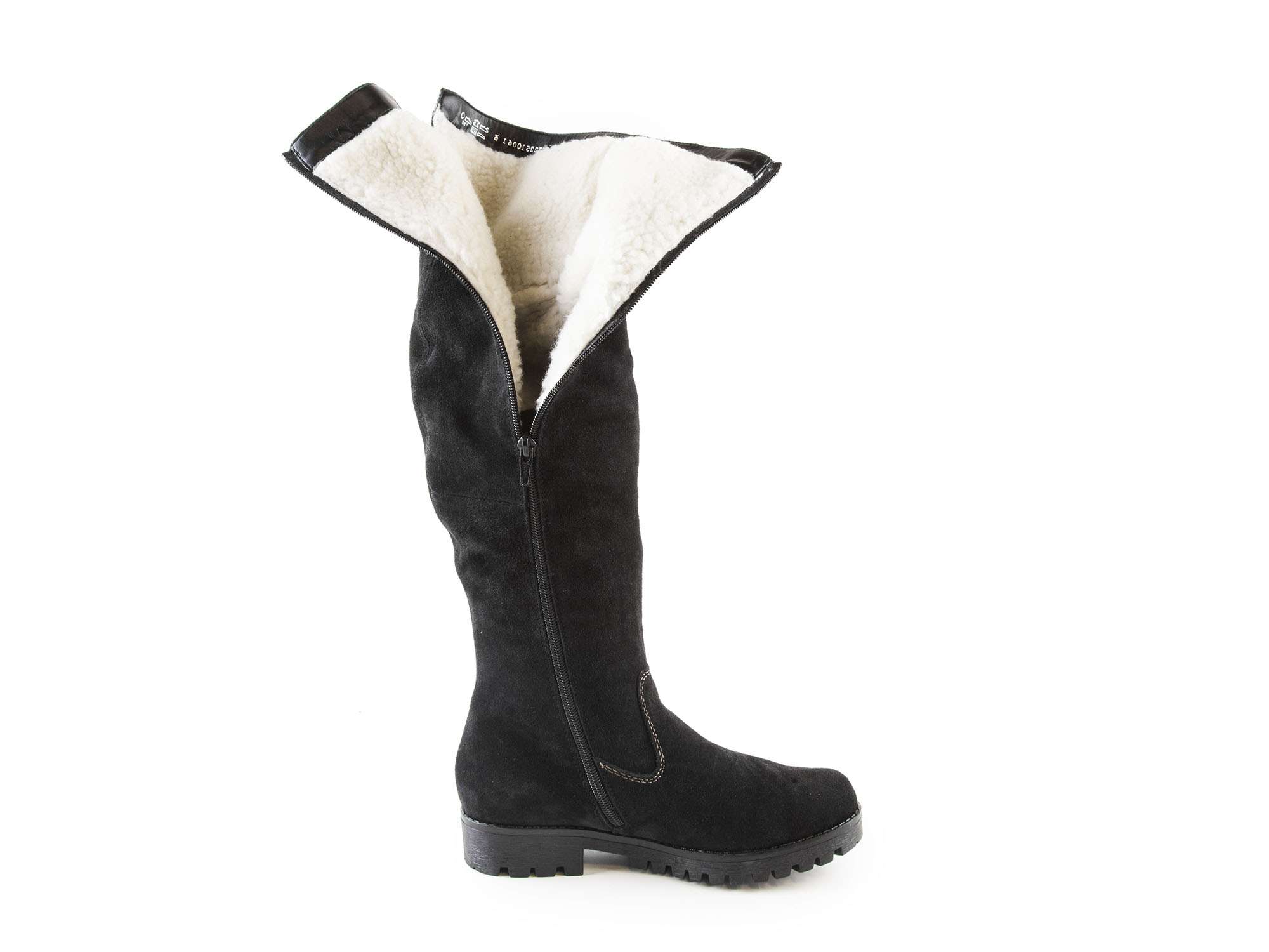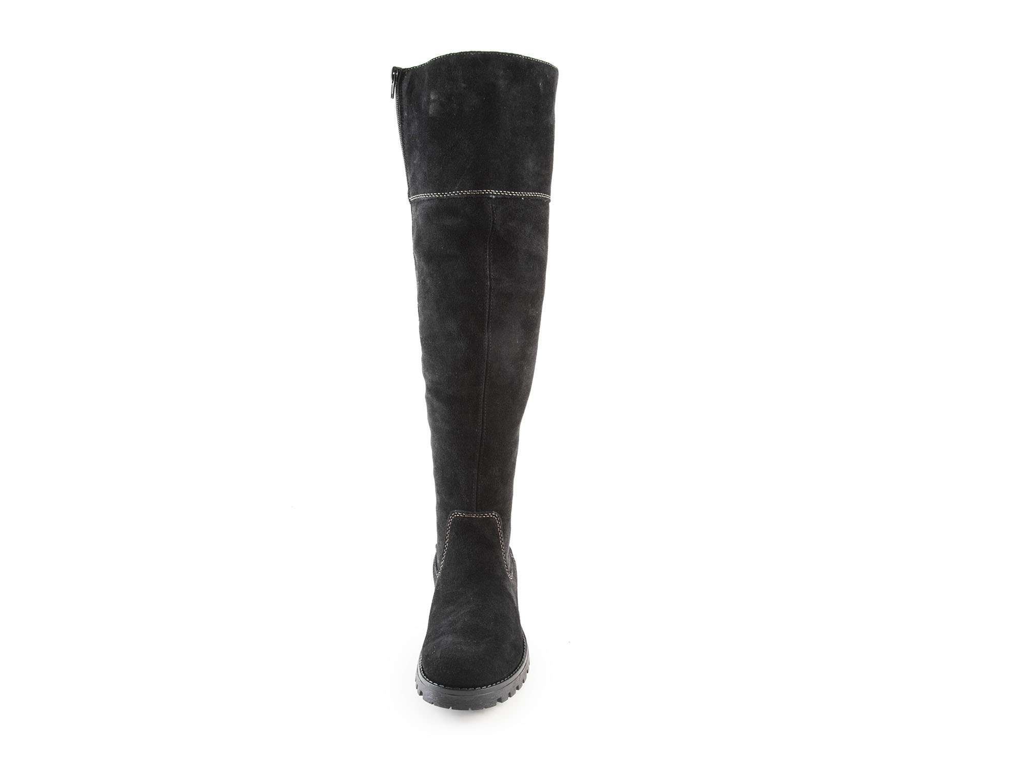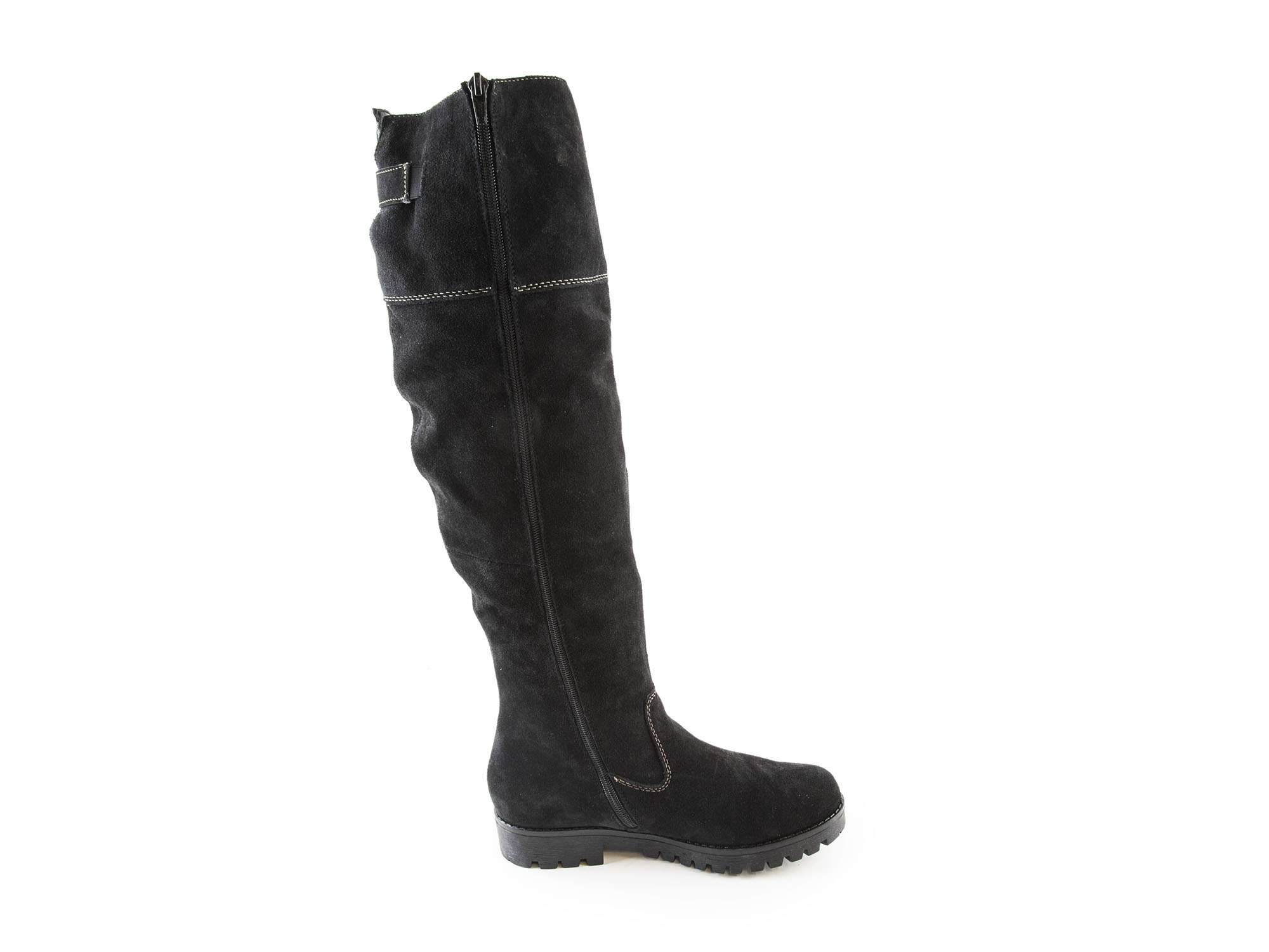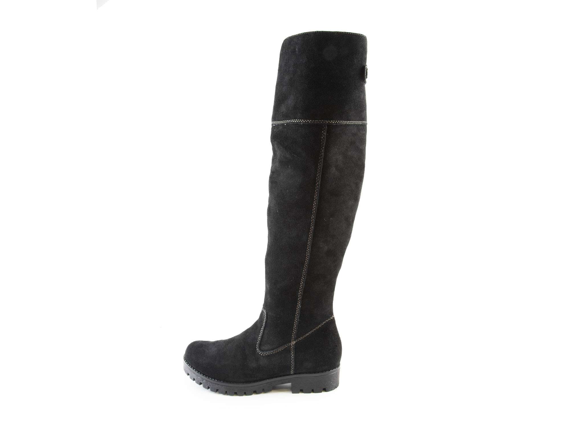 • detail Dámské kožené kozačky přes kolena na nízkém podpatku šíře G 78552-00 / černá