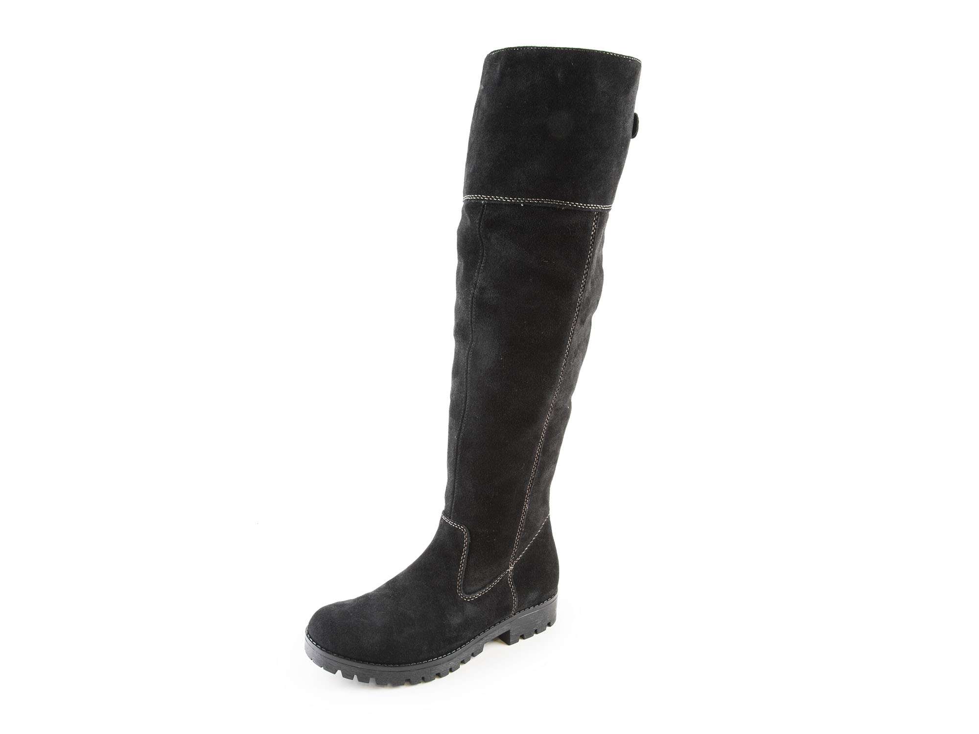 Dámské kožené kozačky přes kolena na nízkém podpatku šíře G 78552-00 / černá