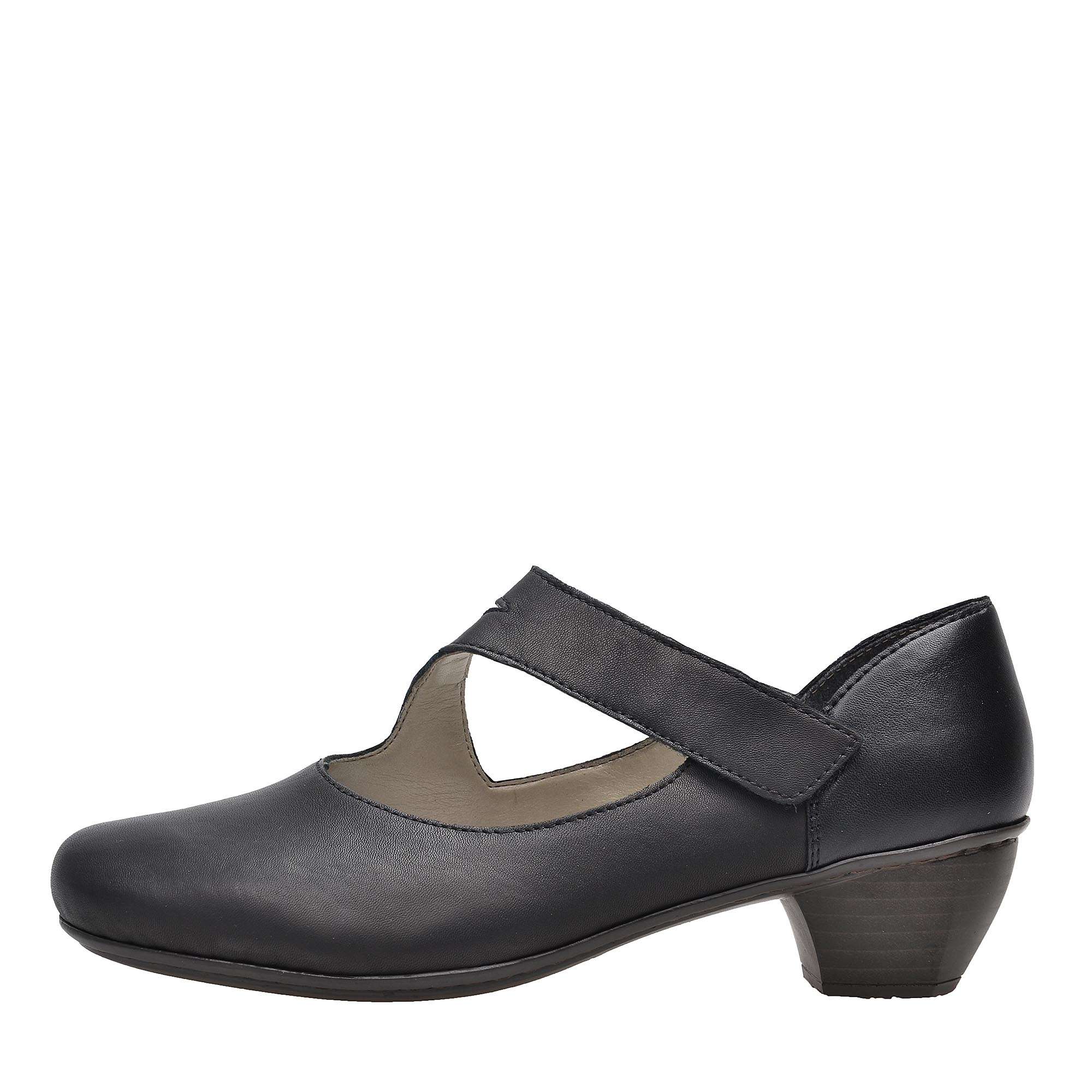 Dámské kožené lodičky s páskem přes nárt na nízkém podpatku [slovnik=4]šíře G[/slovnik] značky Rieker.