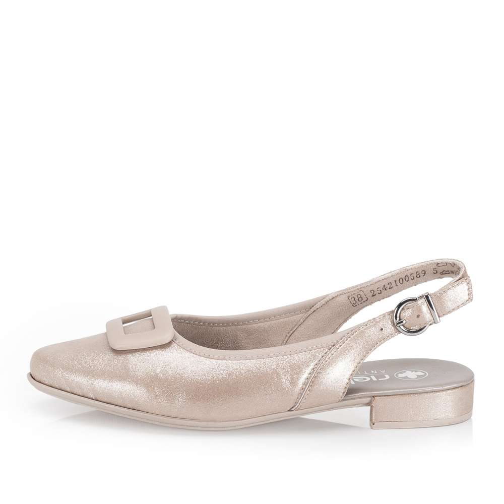Pohodlná dámská obuv značky RIEKER je to pravé, co potřebuje každá žena ve skříňce na obuv. Hladký svršek je na nártu obohacen velkou ozdobou. Pásek, jež vede kolem paty disponuje přezkou, pomocí které si botu dokonale upravíte dle potřeb. Měkká kožená stélka a kvalitní podešev s Antistress technologií Vám zajistí pocit pohodlí po celou dobu nošení. Stylový pár, který podtrhne každý outfit s maximální jednoduchostí a vkusem.