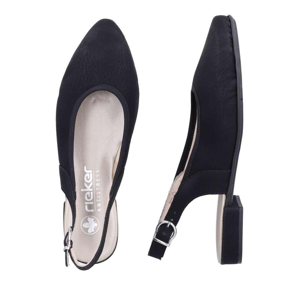 Pozvedněte svůj styl s dámskými slingbacky od značky Rieker. Tyto elegantní černé boty vyrobené z kvalitního materiálu nabízejí výjimečné pohodlí, kterého dosáhnete díky pásku za patou s kovovou přezkou, měkké stélce a kvalitní podešvi s technologií Antistress. Jsou to prostě sandálky ideální pro každou příležitost, od práce až po večerní výlet. Tak neváhejte a přidejte do svého botníku nádech elegance!
