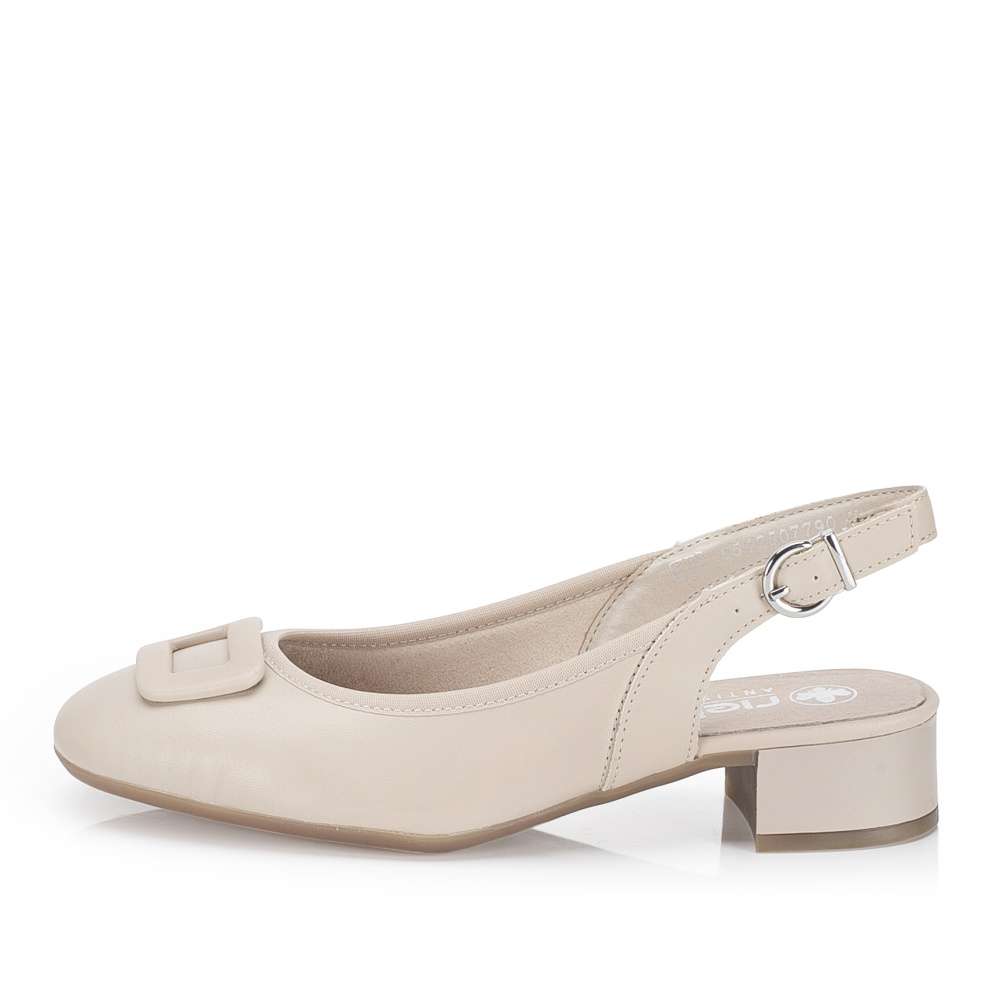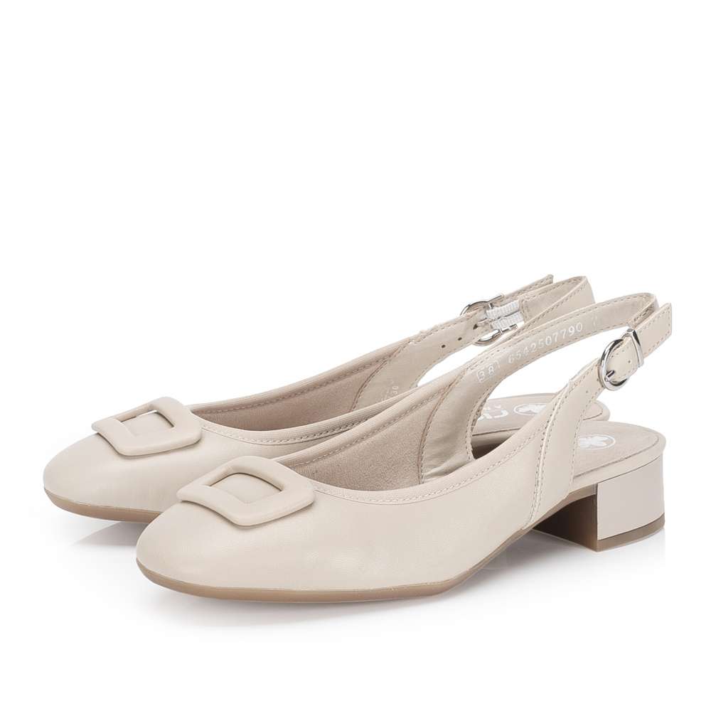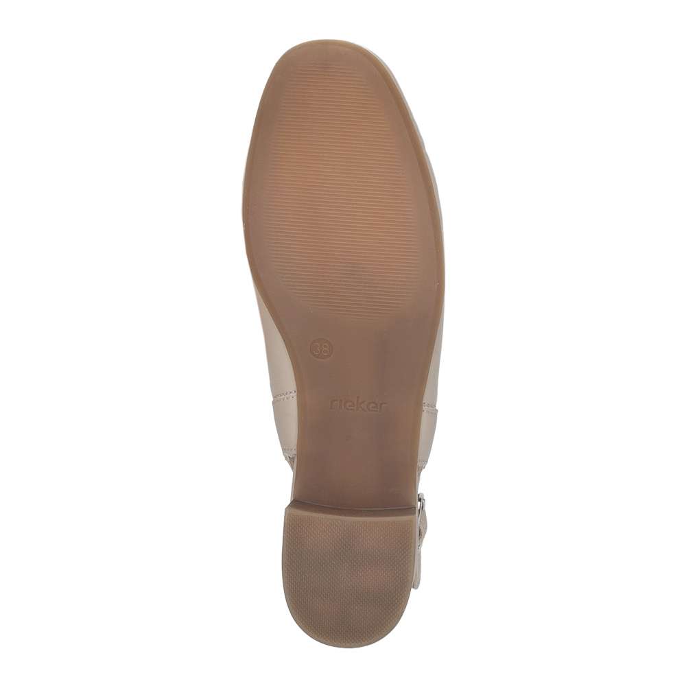 Pohodlná dámská obuv značky RIEKER je to pravé, co potřebuje každá žena ve skříňce na obuv. Hladký svršek je na nártu obohacen velkou ozdobou. Pásek vede kolem paty a disponuje přezkou, pomocí které si botu dokonale upravíte dle potřeb. Nízký a široký podpatek zaručuje stabilitu při chůzi a dodává modelu ženský, ale zároveň praktický charakter. Stylový pár, který podtrhne každý outfit s maximální jednoduchostí a vkusem.