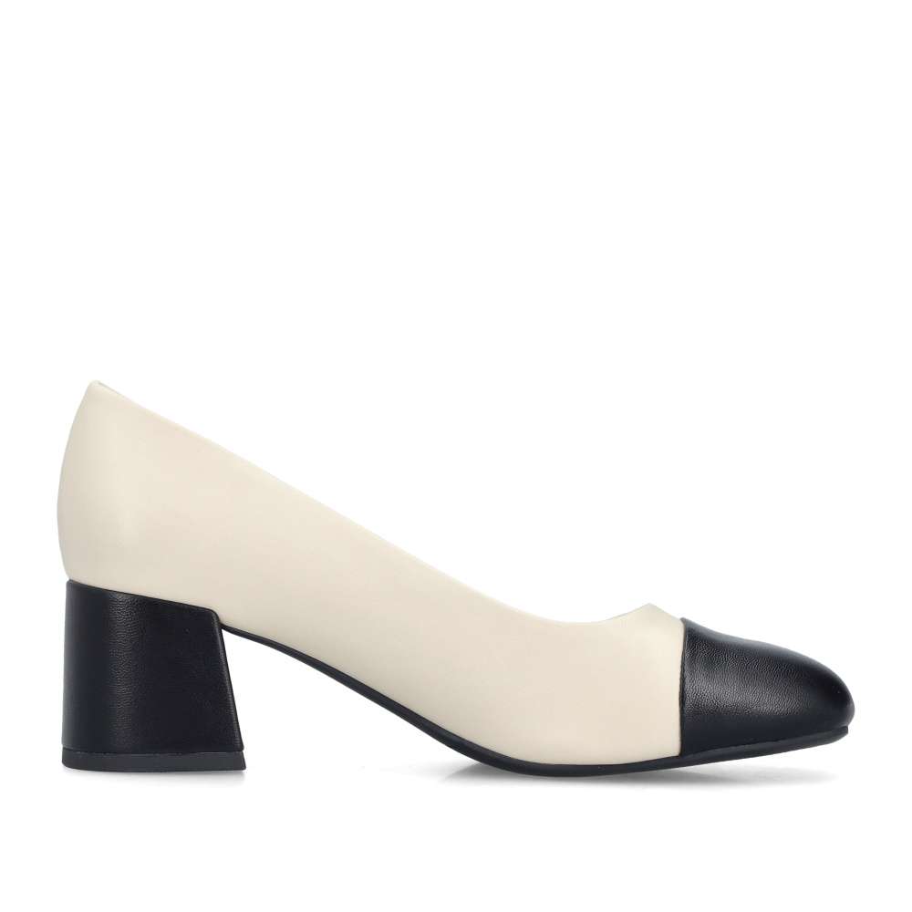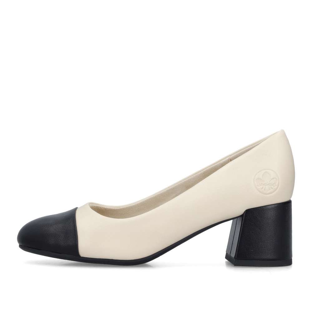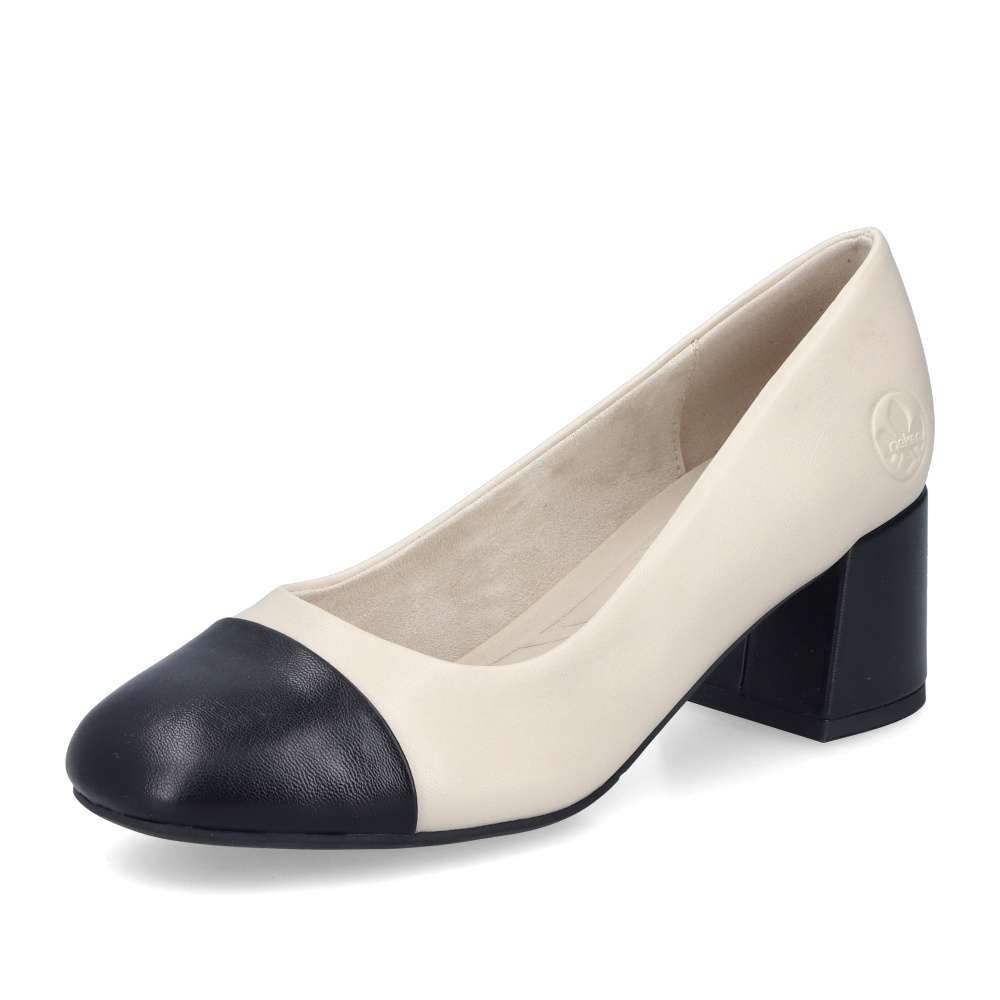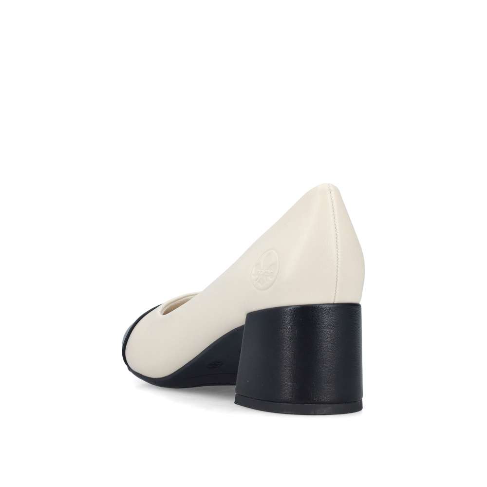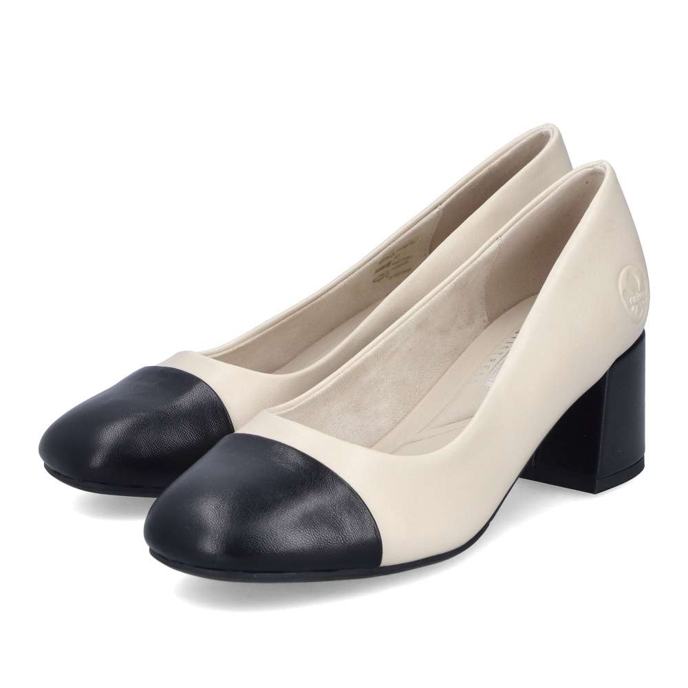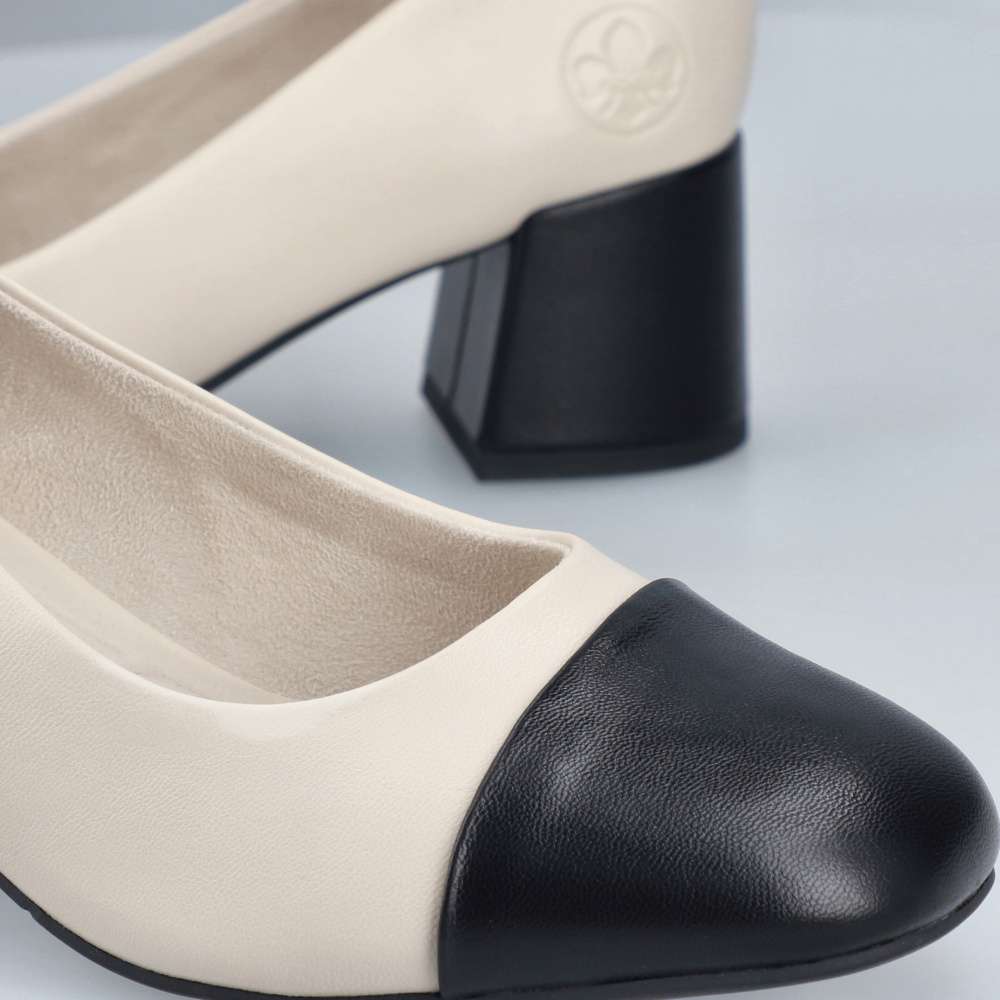 Detailní informace Tato stylová lodička Rieker spojuje nadčasovou eleganci s maximálním pohodlím. Černá špička a černý nízký blokový podpatek dodávají modelu sofistikovaný vzhled, který snadno zkombinujete s kancelářským i společenským outfitem. Světlý svršek působí jemně a moderně, zatímco měkká pohodlná stélka zaručuje celodenní komfort. Ideální volba pro ženy, které hledají stylové, ale zároveň velmi komfortní lodičky.