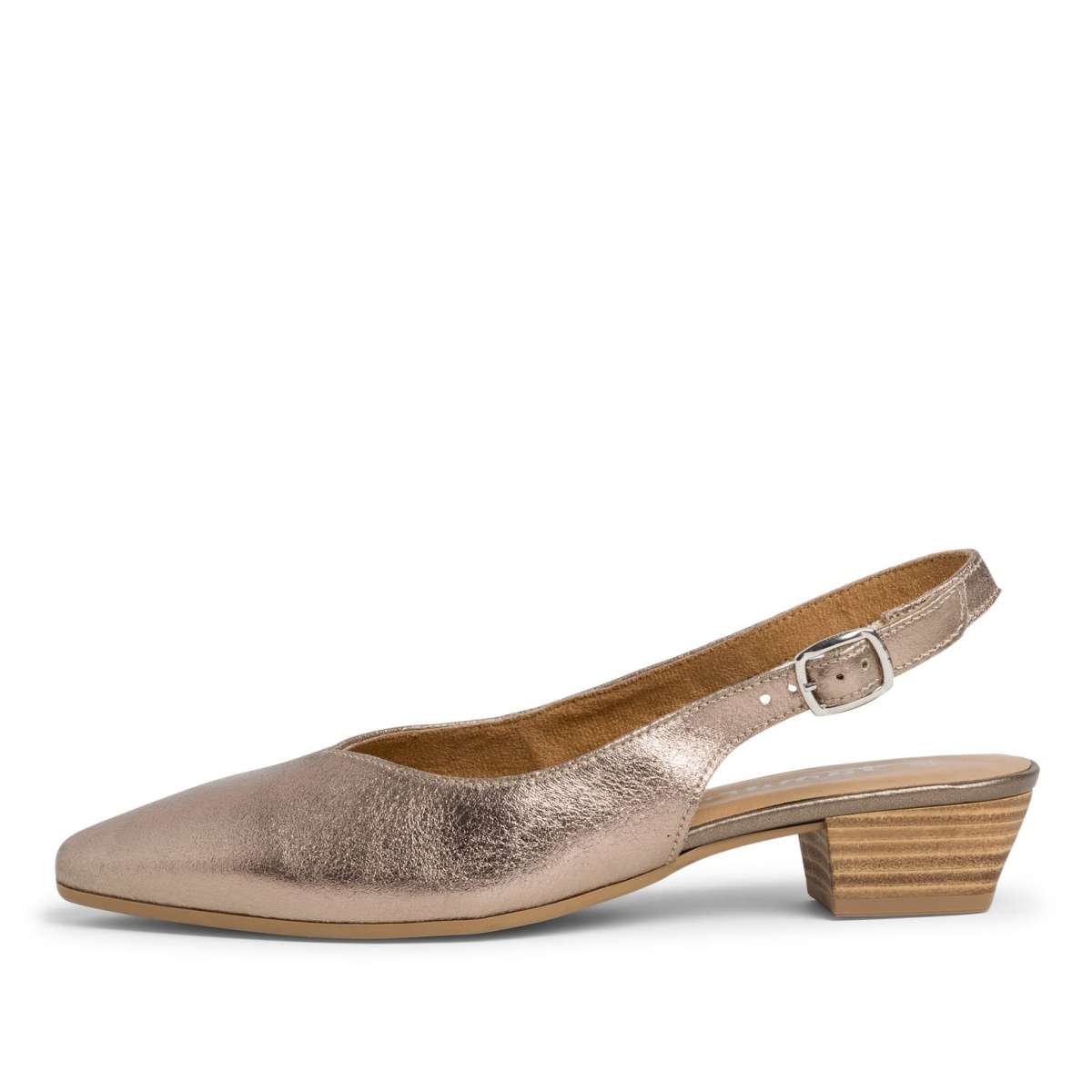 TAMARIS elegantní kožené nízké lodičky jednoduchého vzhledu s otevřenou patou. Svršek a podšívka jsou vyrobeny z materiálu, který se dokonale přizpůsobí Vaší noze. Na patě je vsazená gumička pod sponkou, díky které jdou lodičky snadno a pohodlně obout. Přední část svršku je do špičky se středně velkým vykrojením. Podešev je pevná a skvělá pro dny plné chůze, kdy chcete vypadat elegantně nebo i jen pro běžné nošení do práce nebo do města.