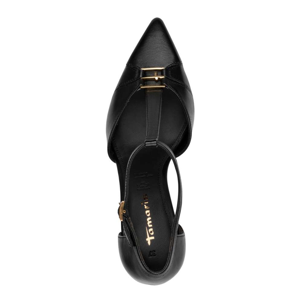Elegance ve stylu značky Tamaris – boty, které spojují luxusní vzhled s maximálním komfortem. Kožené lodičky mají zúženou špičku a vysoký podpatek, který opticky prodlužuje nohy a dodává postavě elegantní vzhled. Trendy detail s logem značky na přední části podtrhuje jejich luxusní charakter. Komfortní pocit při nošení zajistí měkká stélka poskytující pohodlí po celý den a pásek u kotníku s nastavitelnou sponou zajištující dokonalé uchycení a stabilitu. Díky plné patě i špičce se budete cítit jistě a pohodlně při každém kroku. Tyto boty jsou ideální pro ženy, které chtějí spojit styl, eleganci a komfort – ať už do práce, na společenskou událost nebo pro zvláštní příležitost. Udělejte si radost a dopřejte si boty, které kombinují luxusní vzhled s komfortem, který ocení každá noha.
