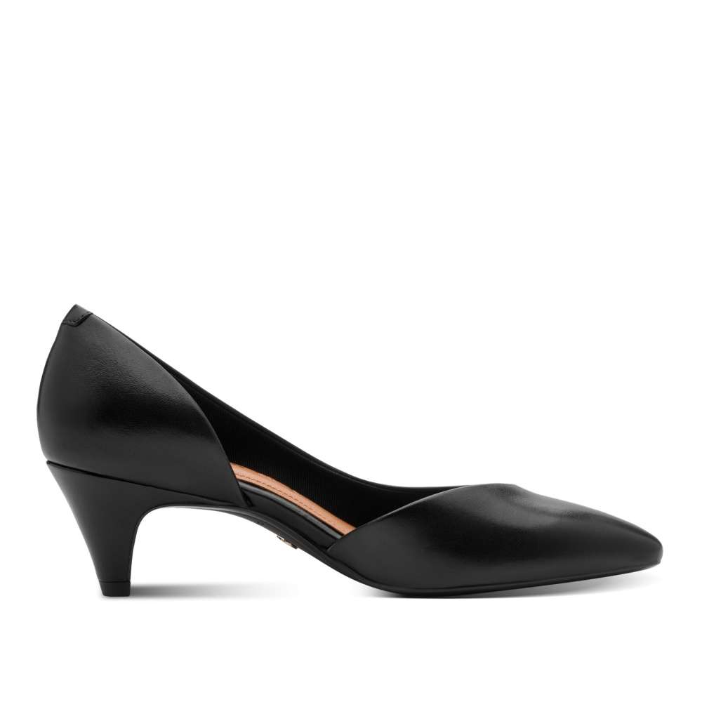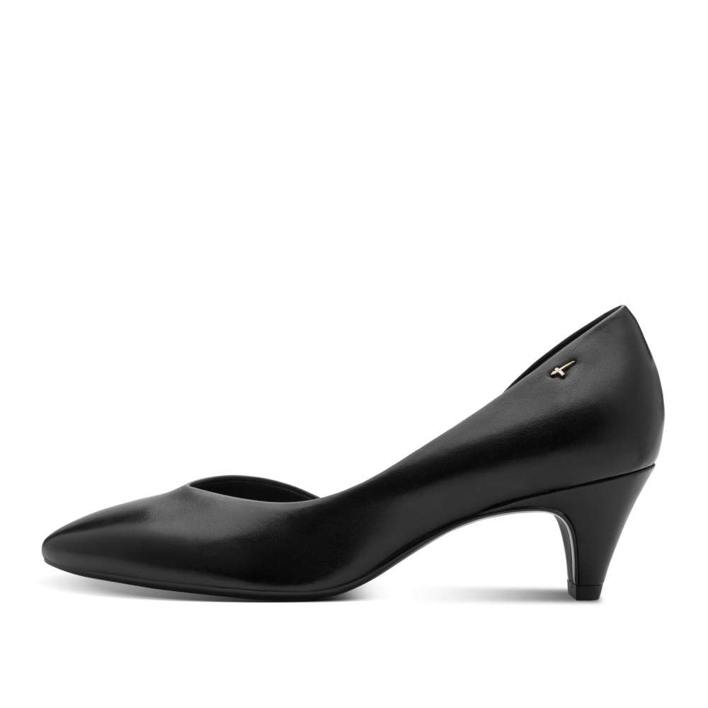 Nadčasová černá klasika v působivém provedení značky Tamaris je ideální volbou pro ženy, které hledají kombinaci elegance a pohodlí. Kožený svršek v čistých hladkých liniích působí sofistikovaně a univerzálně, takže se snadno kombinuje s různými outfity – od každodenního pracovního stylu až po večerní společenské události. Decentní logo značky dodává lodičkám nádech exkluzivity, zatímco měkká kožená stélka poskytuje optimální komfort a podporu chodidla při každém kroku. Nízký podpatek zajišťuje stabilitu a pohodlnou chůzi po celý den, a zároveň elegantně prodlužuje siluetu nohou. Tyto lodičky Tamaris představují nadčasový kousek, který se stane nepostradatelnou součástí vašeho botníku a spolehlivě doplní každý váš outfit – ať už se jedná o pracovní den, posezení s přáteli nebo společenskou událost.