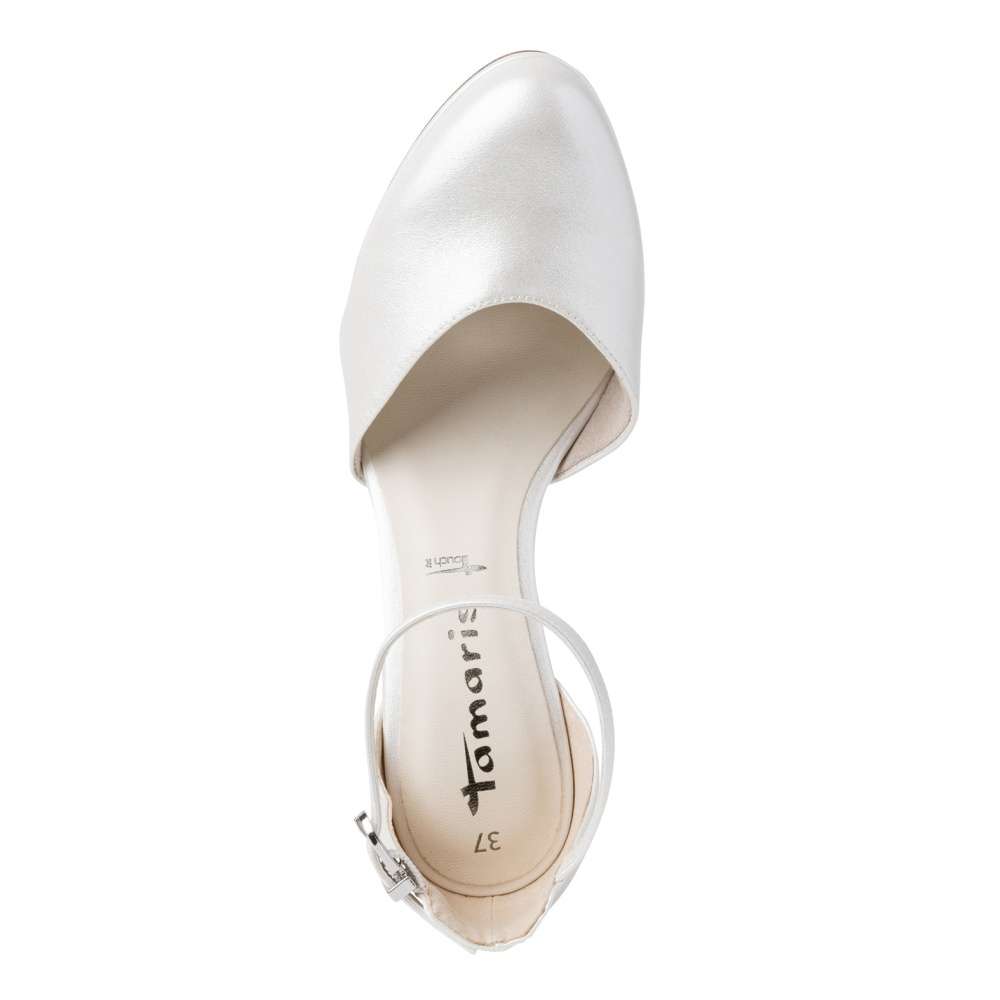Krásné lodičky značky Tamaris Vás uchvátí a zaujmou na první pohled. Bílý perlový nádech dodá na velkoleposti. Elegantní pásek kolem kotníků s jednoduchým zapínáním na vnější straně vyzvedne krásu Vašich nohou. Měkká stélka se dokonale přizpůsobí tvaru nohy a zajistí celkový komfort i přes vysoký podpatek. V těchto lodičkách se stanete nepřehlédnutými. Technologie: Stélka Touch-it – je vyrobena z paměťové pěny, jež se dokonale přizpůsobí vaší noze.