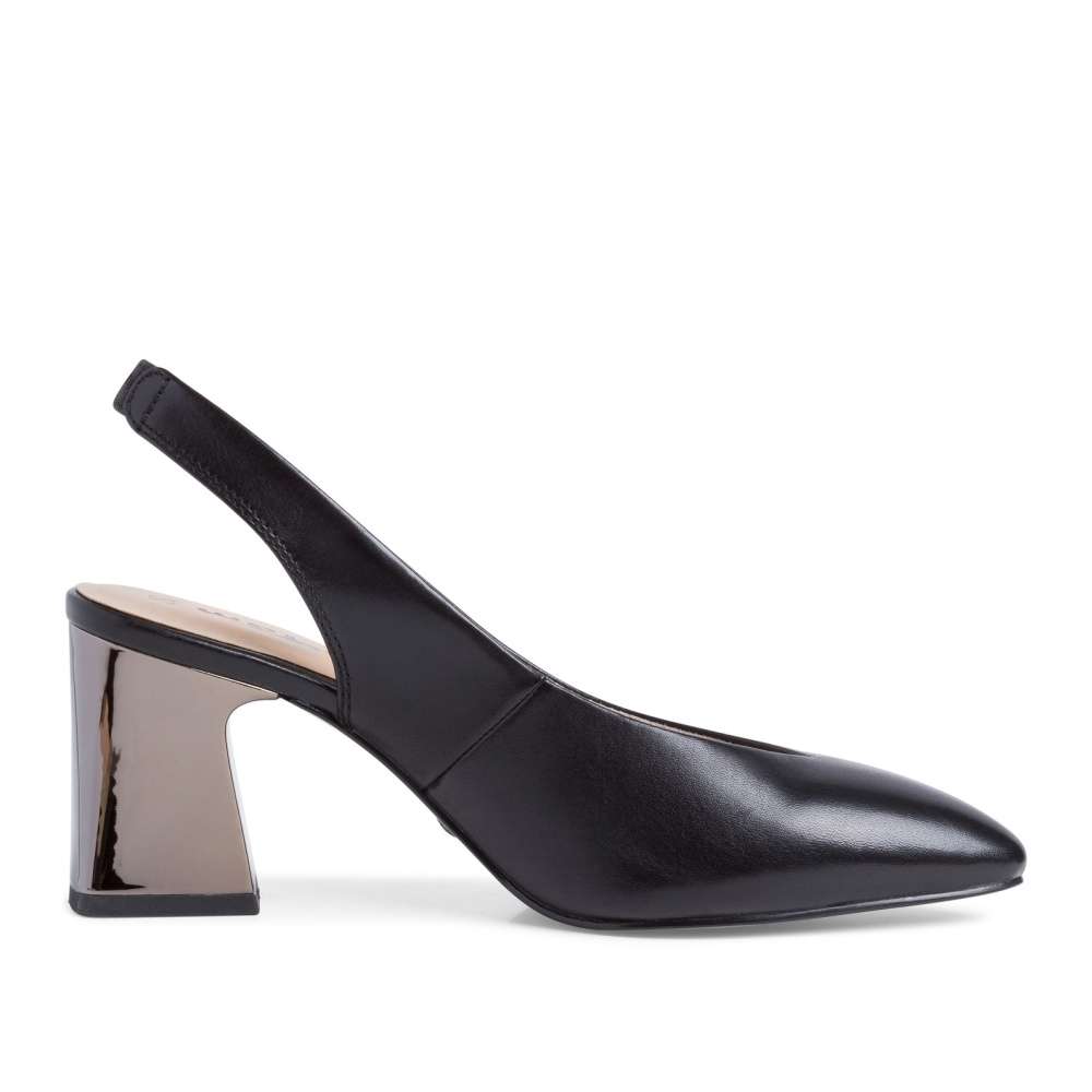 Svršek a podšívka jsou vyrobeny z materiálu, který se přizpůsobí Vaší noze a budete se v nich cítit pohodlně. Na pásku za patou je vsazená gumička, díky které jdou lodičky snadno a pohodlně obout. Přední část svršku je do špičky se středně velkým vykrojením do V.