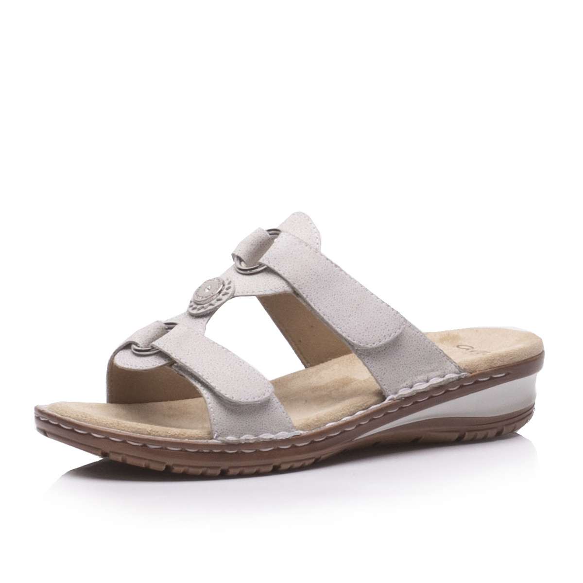 Dámské nazouváky značky ARA budou pro Vás tím správným společníkem na letních procházkách. Kožený svršek je ozdoben kovovými kroužky a zdobnou aplikací uprostřed nártu. Obuv si dokonale přizpůsobíte dle svých požadavků, díky nastavitelným páskům na suchý zip. Tento slušivý model nabízíme ve třech barevných provedeních.