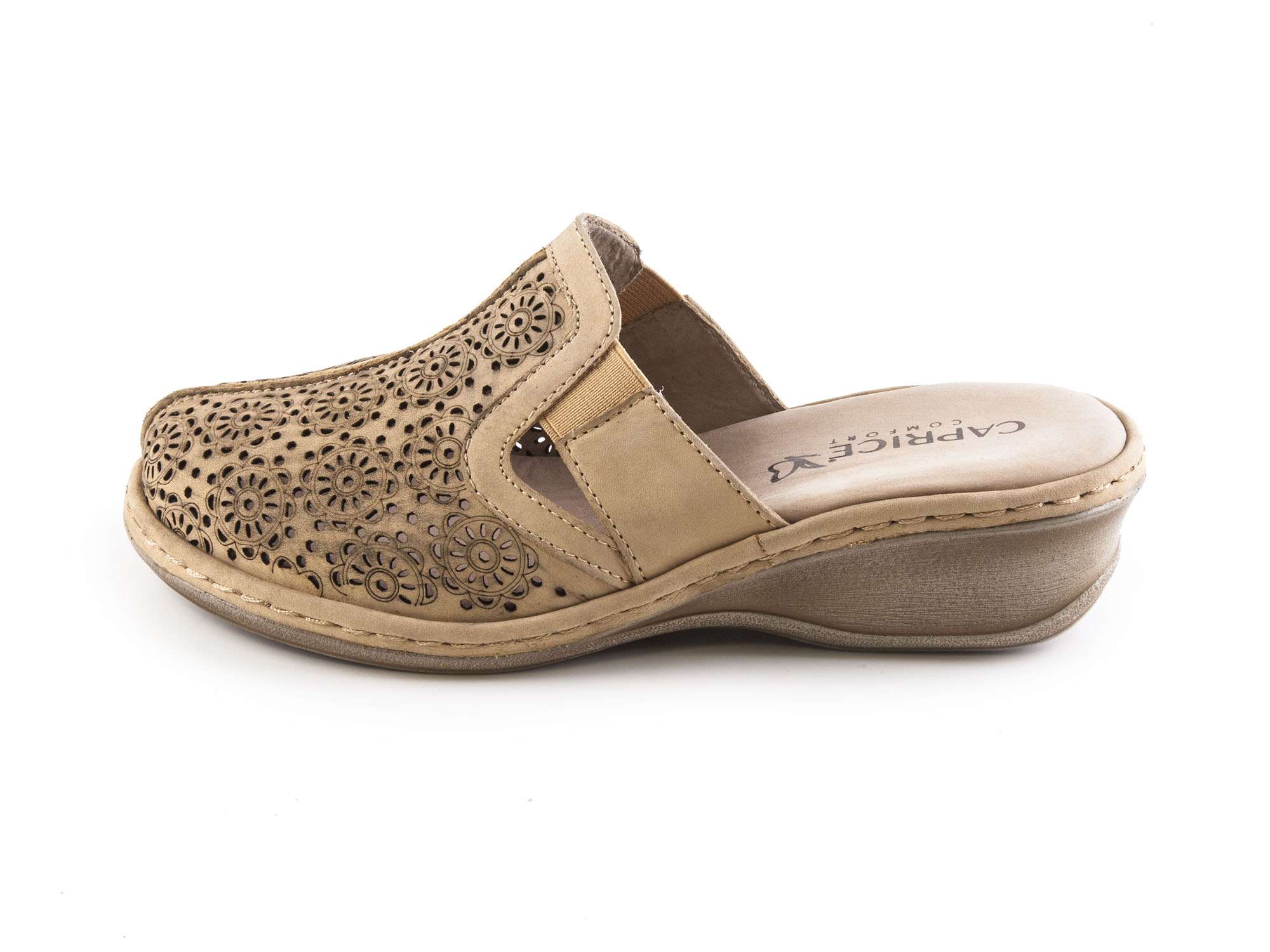 Dámské uzavřené pantofle [slovnik=6]šíře H[/slovnik] na středně vysokém podpatku/klínku v celokoženém provedení značky Caprice.