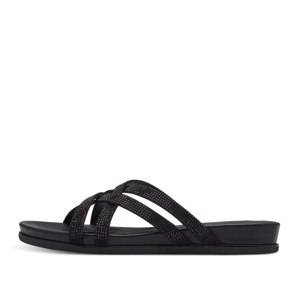 Detailní informace Získejte šarm a eleganci s těmito nazouváky od značky Jana, černý svršek je posetý trpytivými kamínky a zajímavě poskládanými pásky přes nárt. Jejich pohodlná stélka a flexibilní podrážka zaručují pohodlí a stabilitu při každém kroku. Tyto nazouváky jsou nejen stylovým doplňkem vašeho outfitu, ale také praktickou volbou pro celodenní nošení.