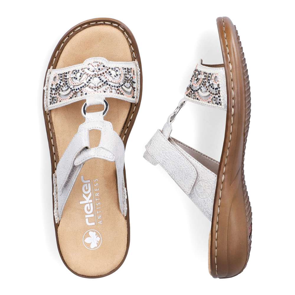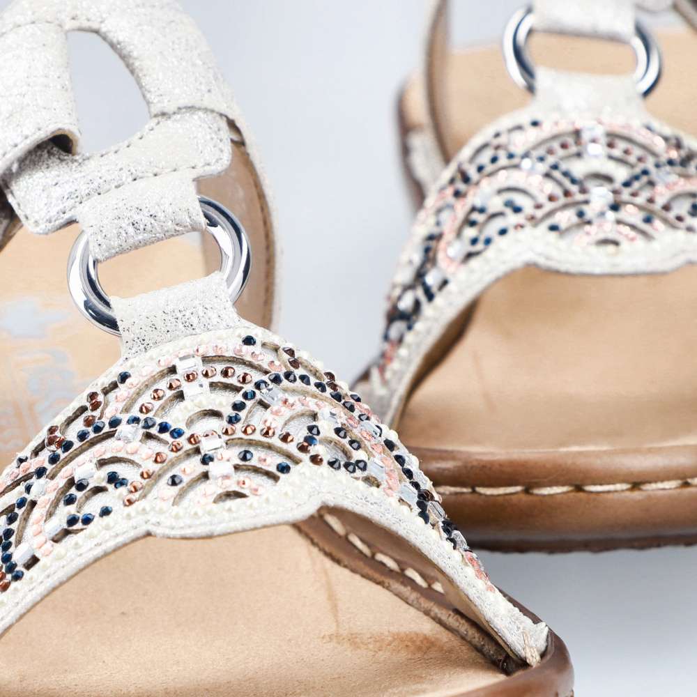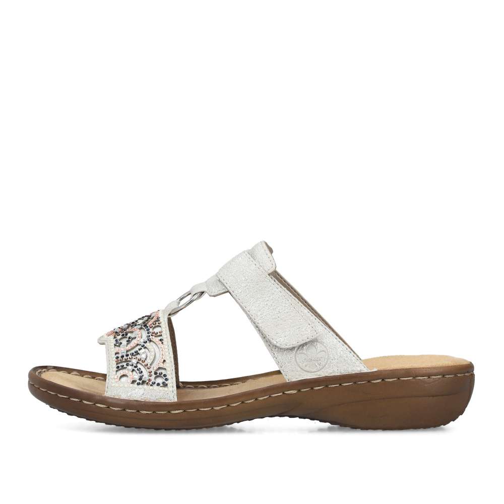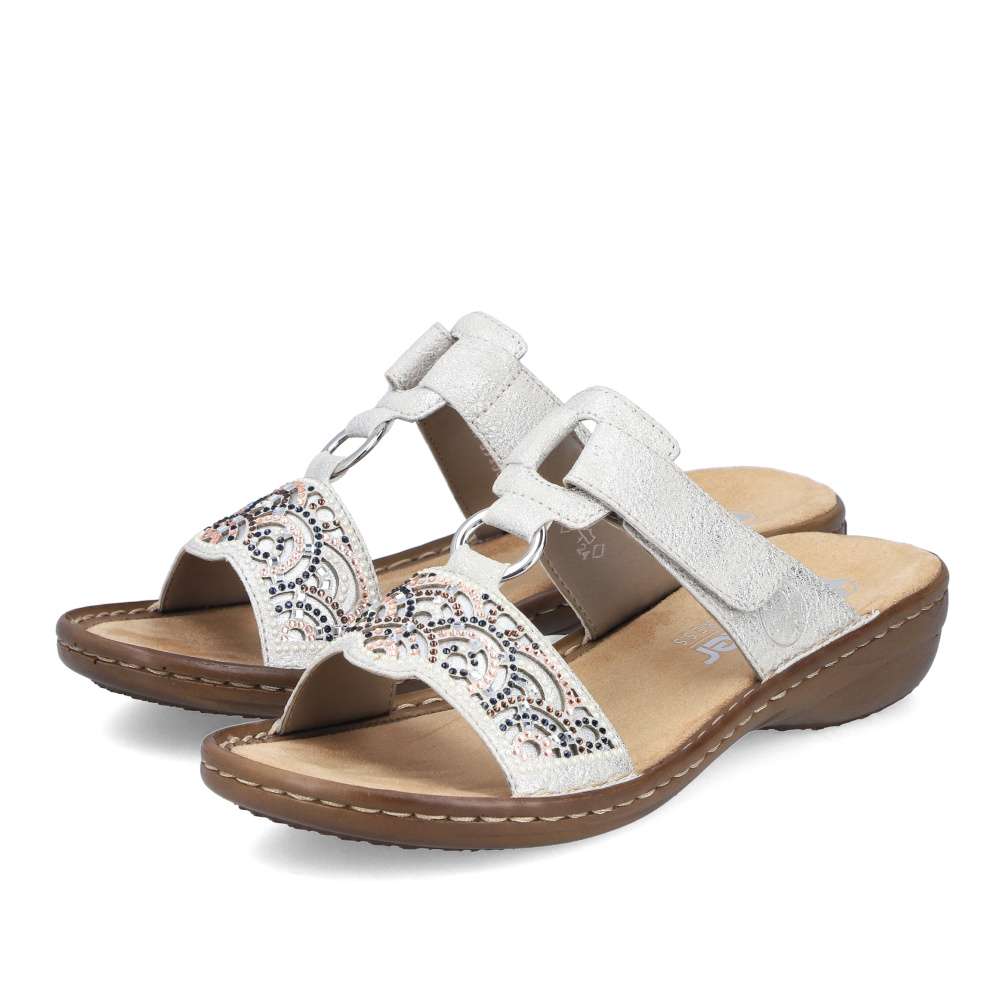 Nazouváky RIEKER vynikají jedinečným vzhledem a maximálním pohodlím. Šedý svršek je stylově zdobený na předním pásku výrazným dekorem a kovovým kroužkem, který dodává sandálům elegantní šmrnc. Druhý pásek je opatřen suchým zipem, který umožňuje snadné přizpůsobení pro pohodlí každé z vás. Podešev s funkcí tlumení nárazů zajišťuje komfort při každém kroku, takže tyto boty jsou ideální volbou do práce i toulky městem.