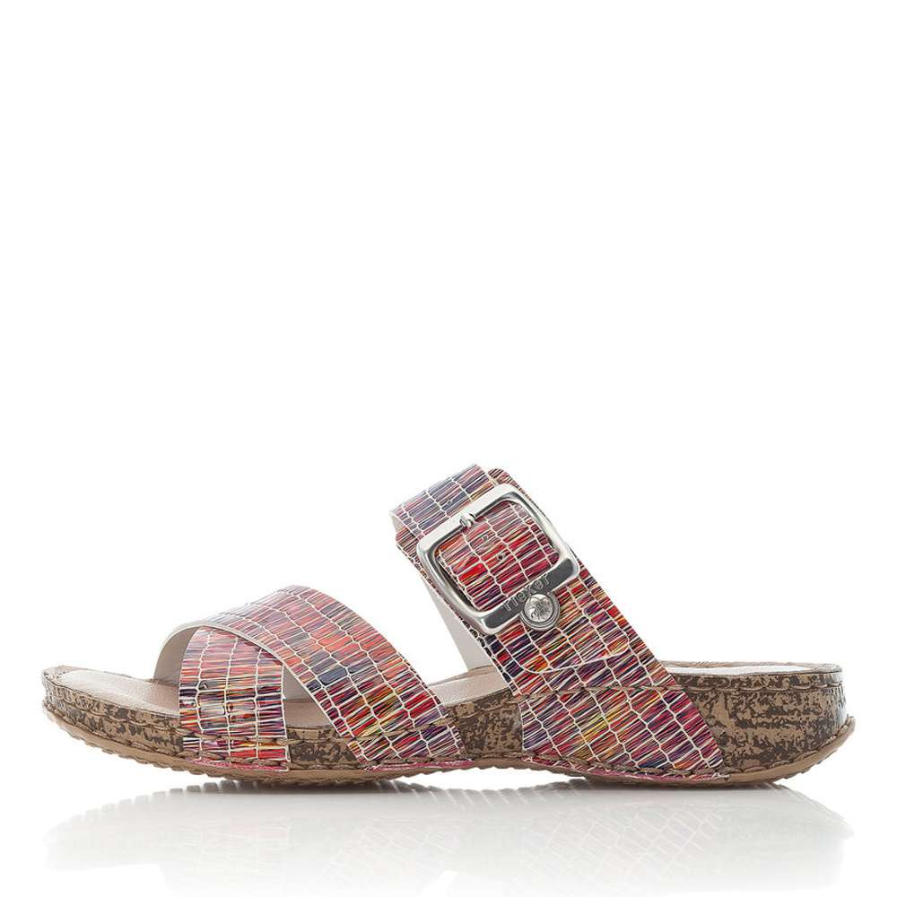 Svůj unikátní vzhled má tato obuv díky žíhanému barevnému svršku, který je rozdělen na nepravidelné obdélníčky. Nártový pásek je vybaven stříbrnou sponou, díky které si obuv pohodlně nastavíte přímo na svou nohu.