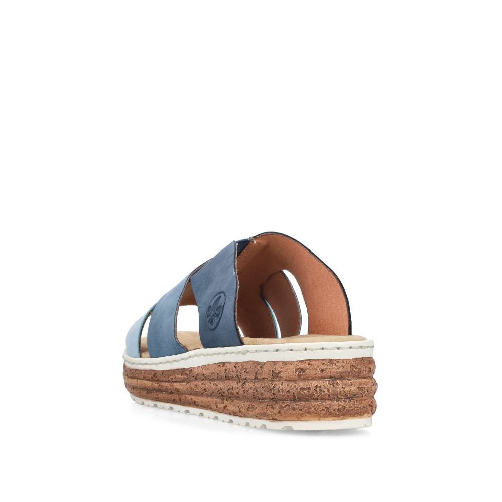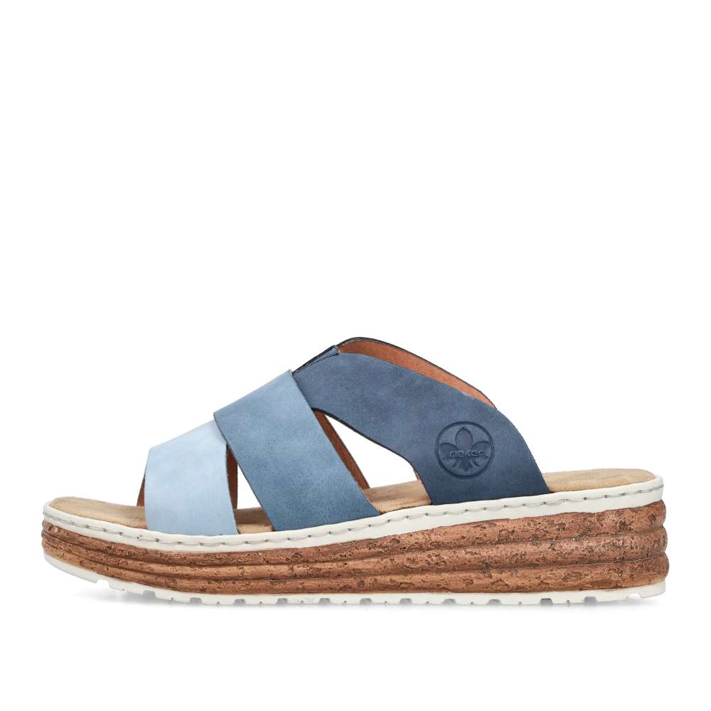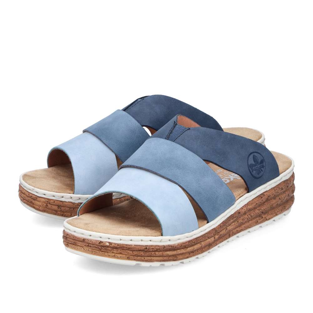 Tyto nazouváky RIEKER okouzlí harmonickými modrými odstíny precizně poskládaných pásků, které vytvářejí nejen módní vzhled, ale také spolehlivou oporu chodidlu. Design působí svěže, žensky a zároveň nadčasově, díky čemuž se model snadno kombinuje s letními outfity. Příjemná textilní stélka spolu se širším střihem přinášejí vysoký komfort i při celodenním nošení. Model doplňuje vyšší klínový podpatek v atraktivním provedení, který jemně prodlouží siluetu, dodá ženskost a zároveň si zachová stabilitu a pohodlí při chůzi. Ideální volba obutí pro ženy, které hledají pohodlné a výrazné letní nazouváky pro každodenní využití.