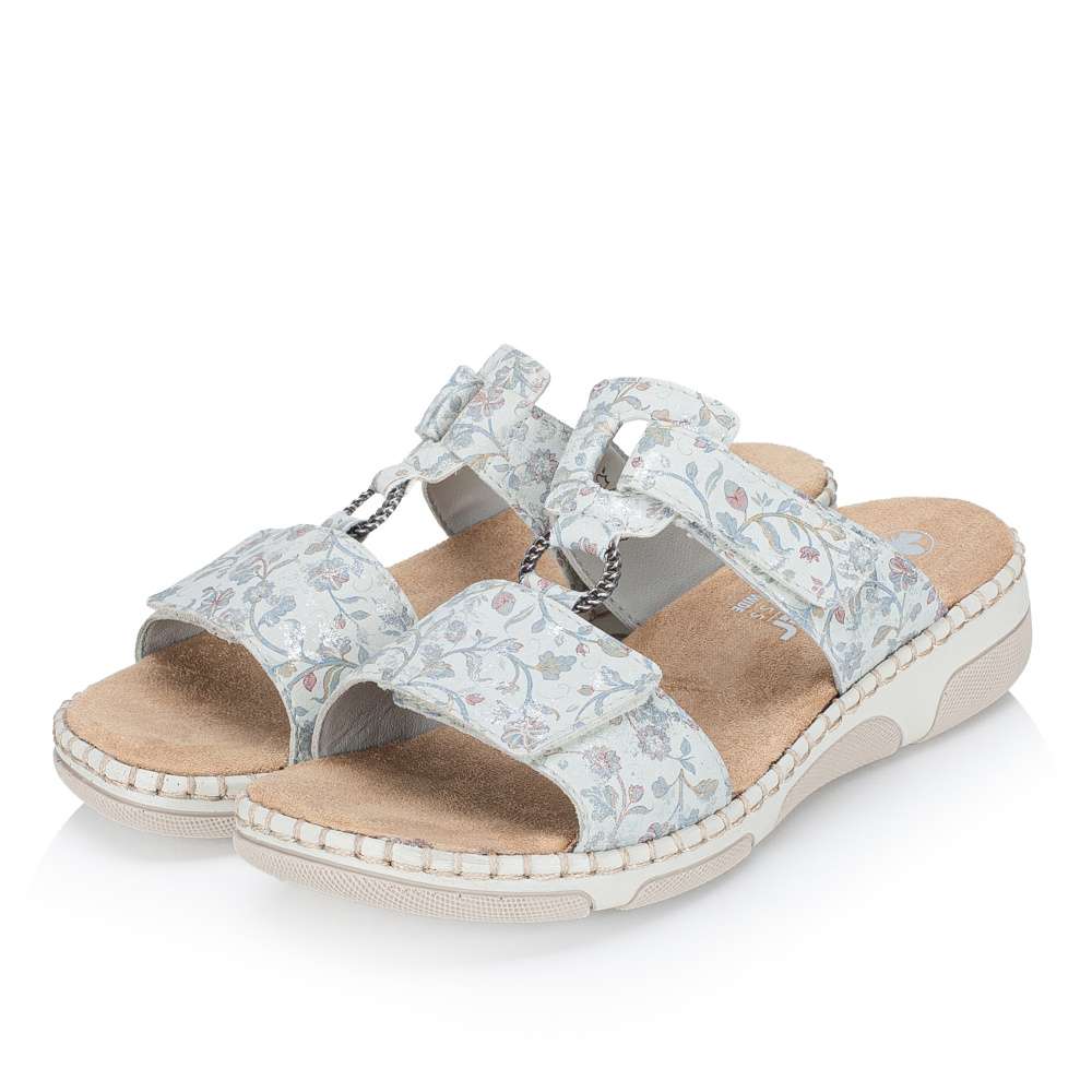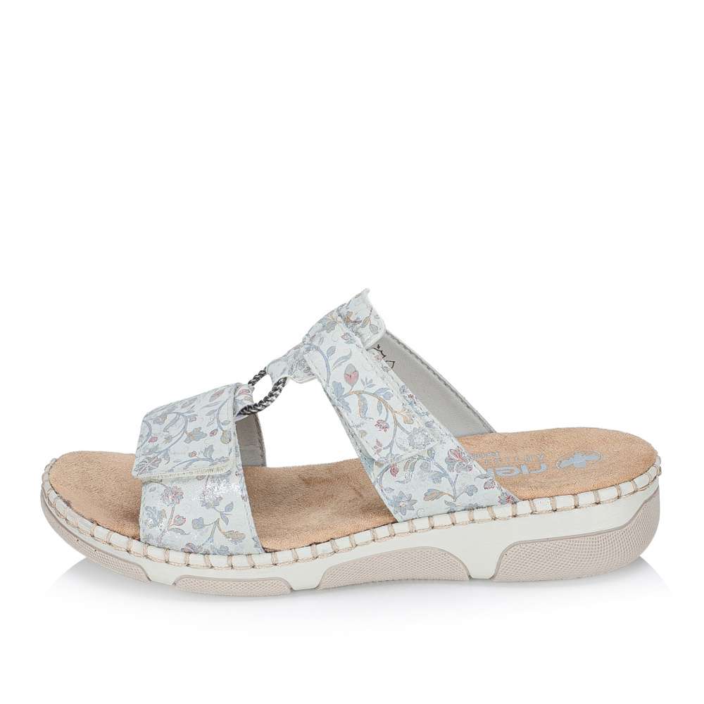 Nazouváky RIEKER přinášejí do každého outfitu svěží, módní nádech. Jemný potisk s odlesky dodává povrchu hravost a vizuální hloubku, zatímco kulatá dekorativní aplikace spojující pásky vytváří stylový detail. Oba nártové pásky jsou opatřeny suchým zipem, což umožňuje rychlé a snadné přizpůsobení boty vaší noze. Textilní stélka a širší střih poskytují komfort při každém kroku, zatímco nárazy tlumící podešev s prošívaným lemováním zaručuje stabilitu a pohodlí i při delším nošení. Tyto nazouváky budou módním kouskem, který skvěle doplní letní outfity do práce i trávení volného času.