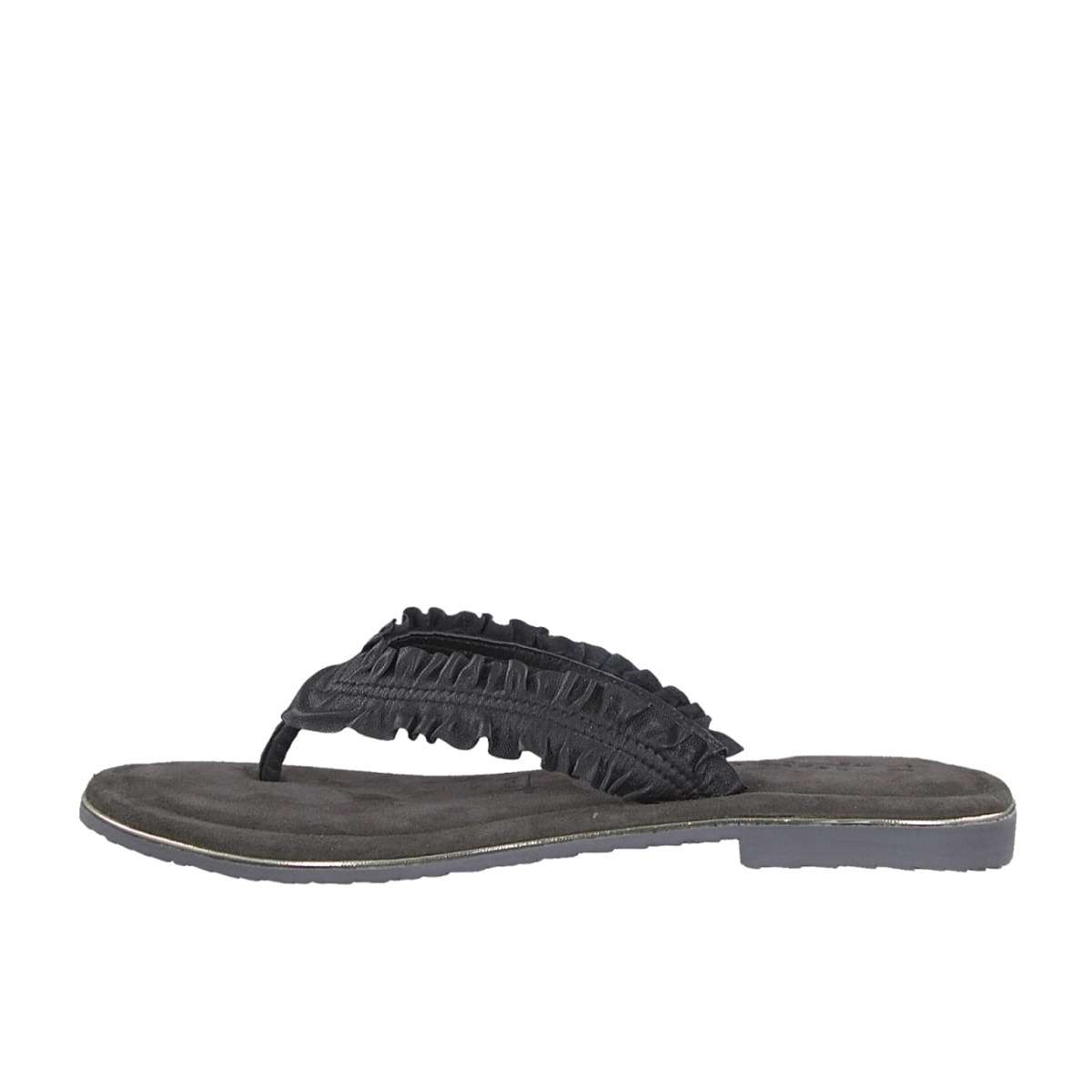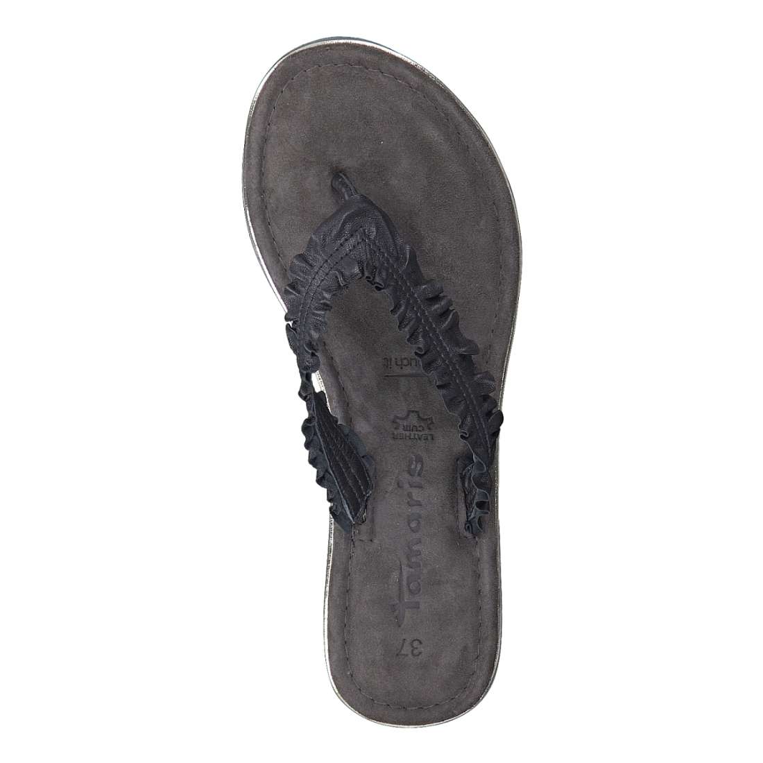 Dámské letní žabky značky Tamaris vyrobeny z pravé kůže jsou zdobeny řasením svršku a lesklým proužkem kolem obvodu boty. Tento model nabízíme ve více barevných variantách pro jednoduchou kombinovatelnost se všemi vašimi outfity, které využijete například na procházky městem.