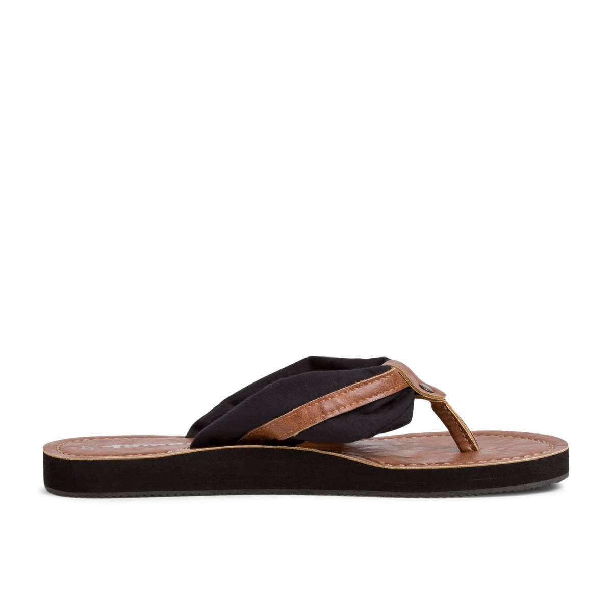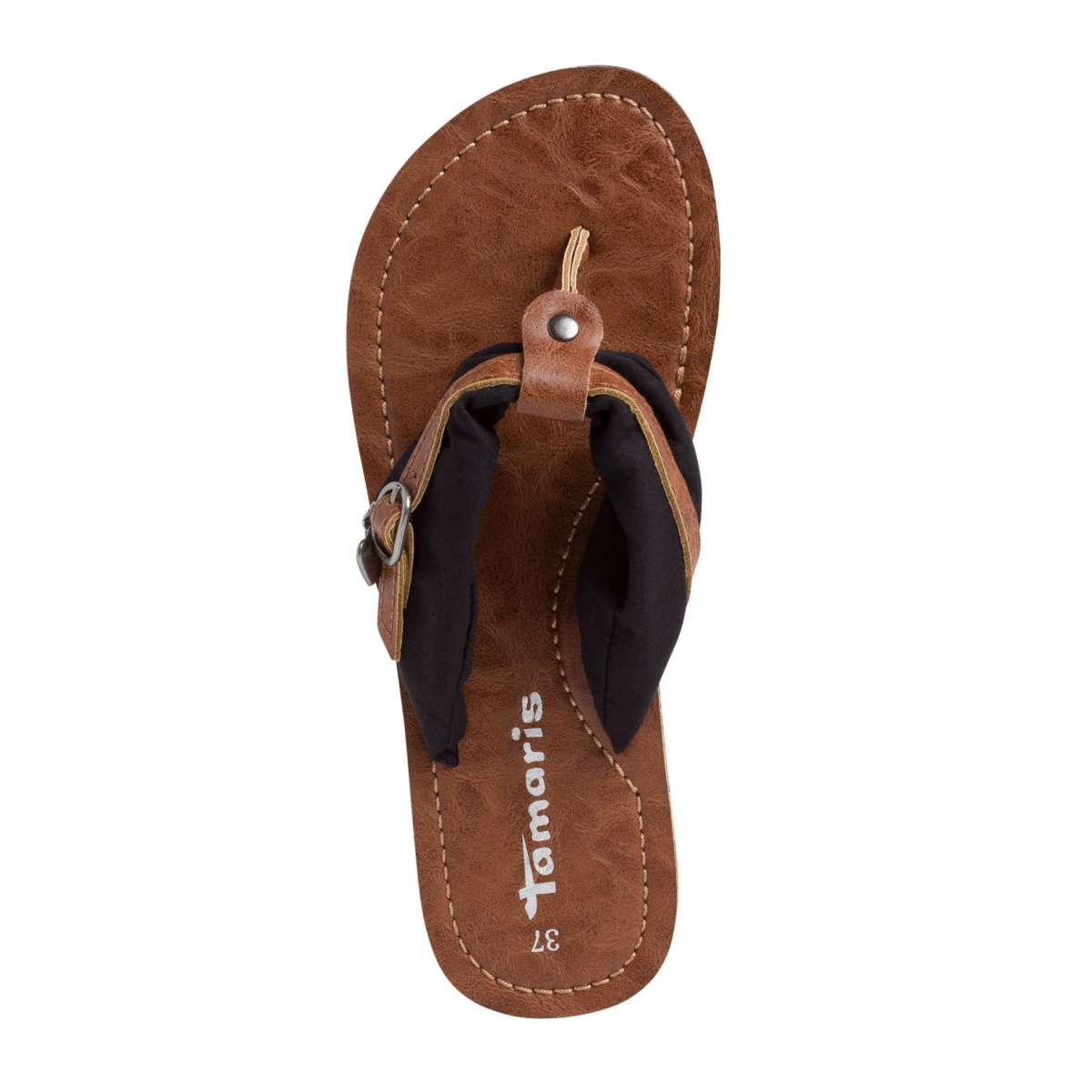 Dámské nazouváky žabkového stylu značky Tamaris mají hladký povrch a kulatou špičku. Zdobené jsou provedením a designem svršku, který je pro každou barvu unikátní. Černý textilní pásek je doplněn kontrastním hnědým řemínkem s drobným přívěskem. Tento model je vhodný na procházky po městě či na dovolené.