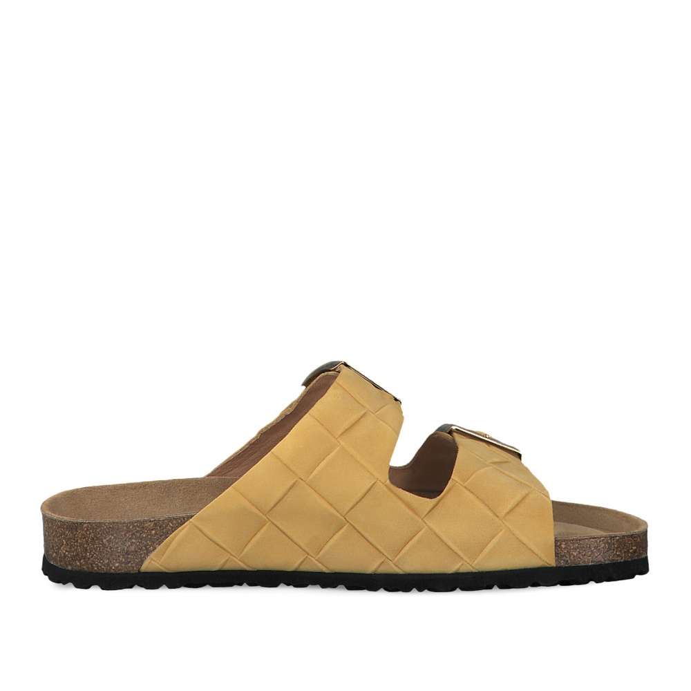 Propracovaný svršek je ozdoben kovovými sponami, které umožní pohodlné nastavení pásků přes nárt.