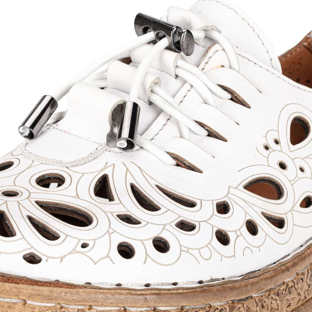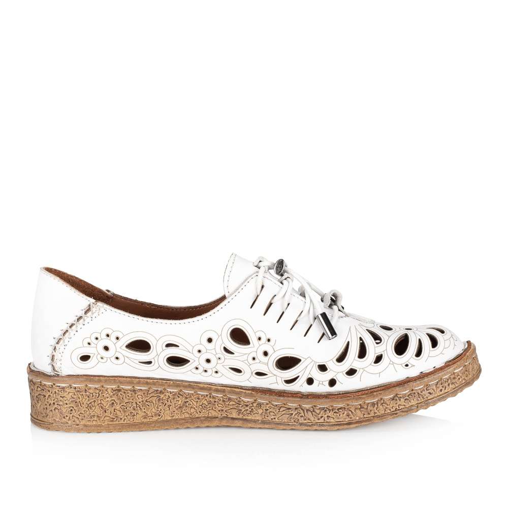 Detailní informace Tento jedinečný kousek dámské obuvi IBERIUS potěší nejen vzhledem, ale také maximálním pohodlím. Kožený vršek je zdoben perforací se vzorem, proto je prodyšný a Vám v botě nebude horko. Šněrování gumičkou umístěné na nártu usnadní obutí a dokonale obepne Vaši nohu. Měkká kožená stélka bude dokonalým společníkem na pochůzkách městem i cestě do práce.