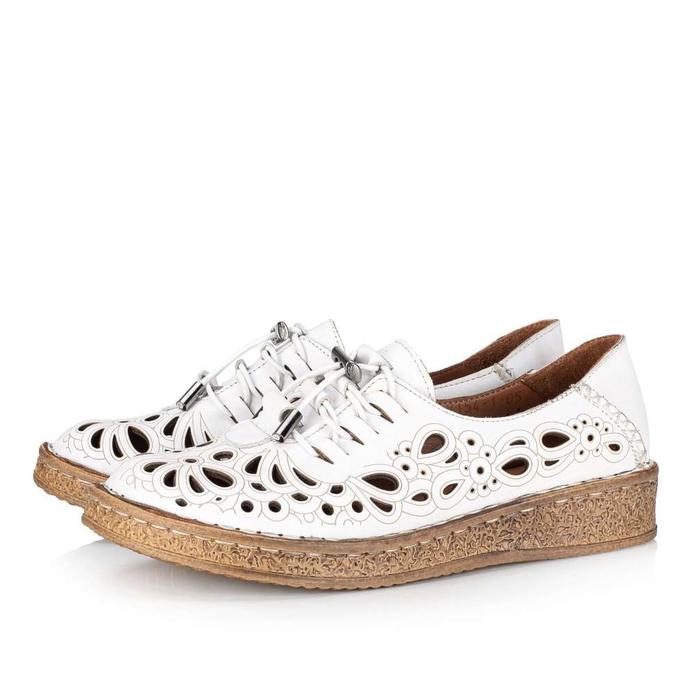 Tento jedinečný kousek dámské obuvi IBERIUS potěší nejen vzhledem, ale také maximálním pohodlím. Kožený vršek je zdoben perforací se vzorem, proto je prodyšný a Vám v botě nebude horko. Šněrování gumičkou umístěné na nártu usnadní obutí a dokonale obepne Vaši nohu. Měkká kožená stélka bude dokonalým společníkem na pochůzkách městem i cestě do práce.