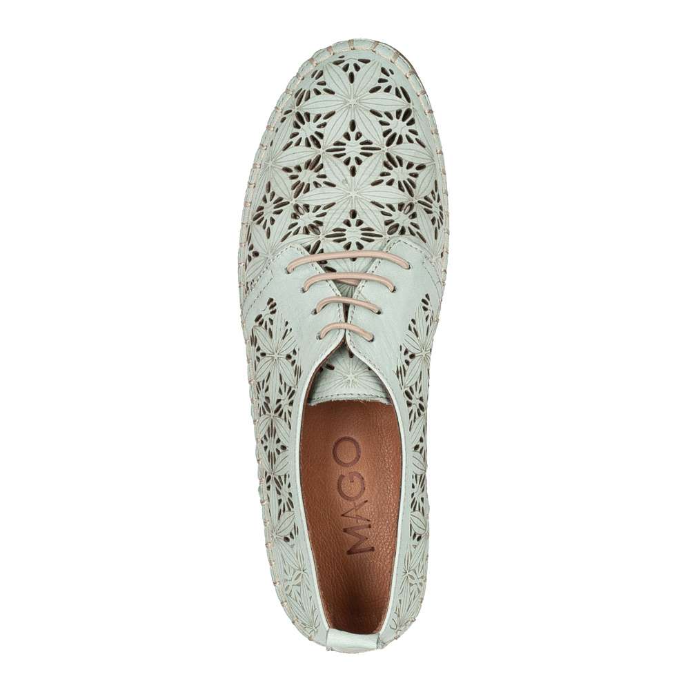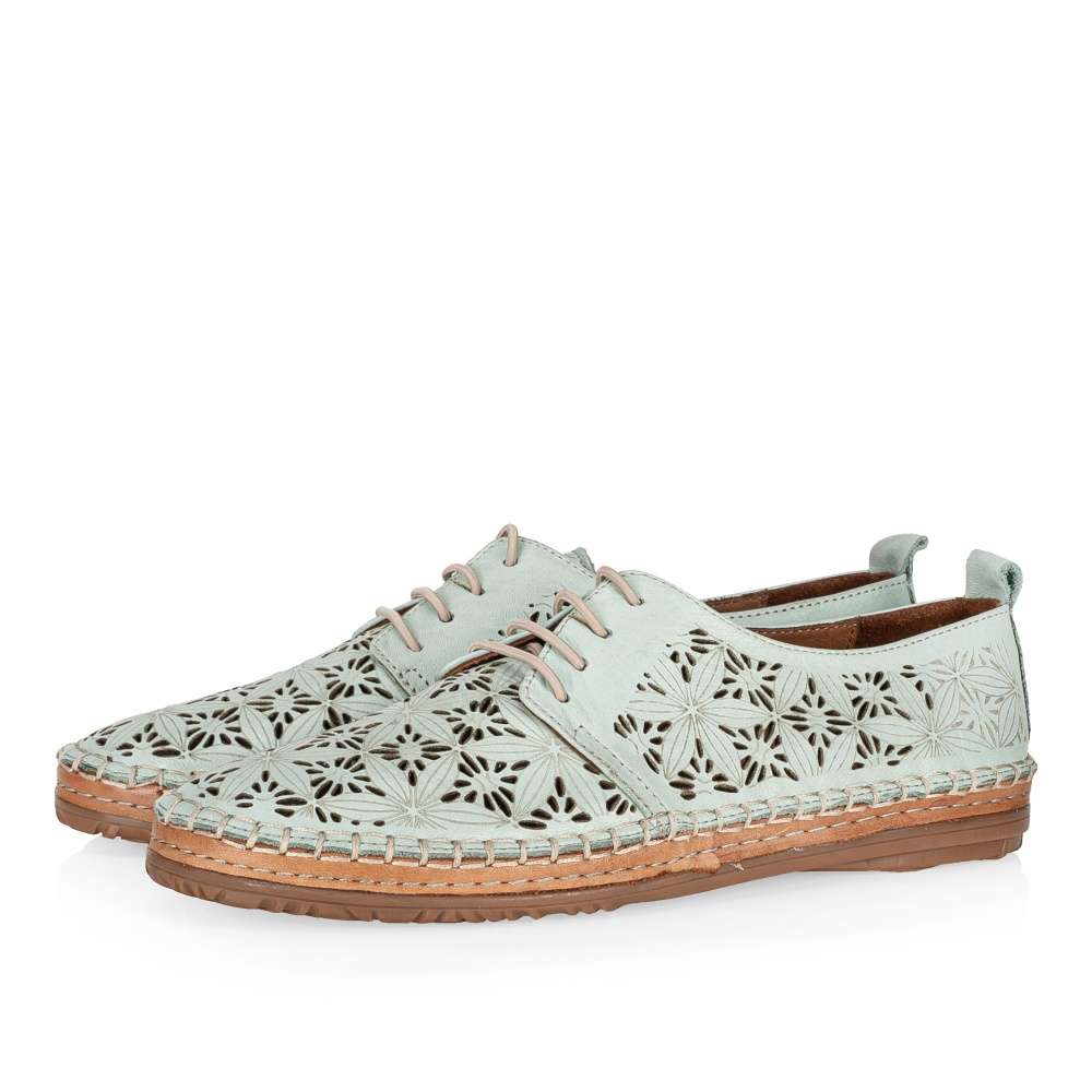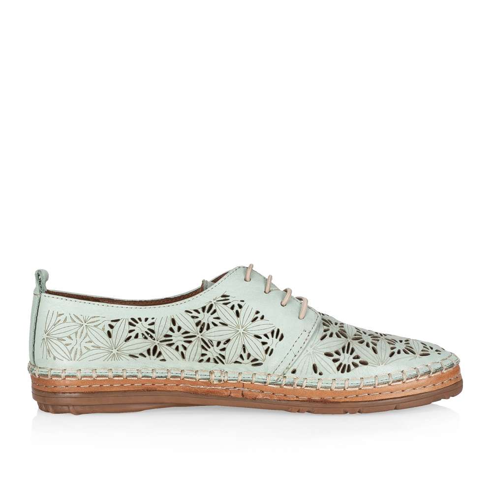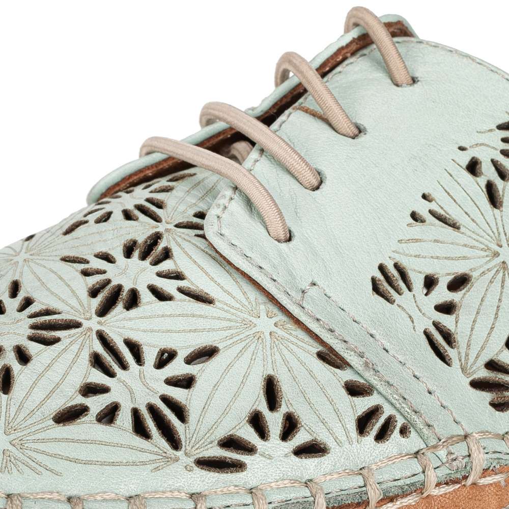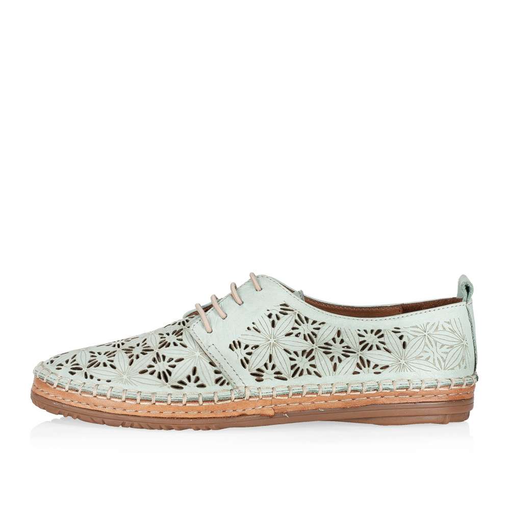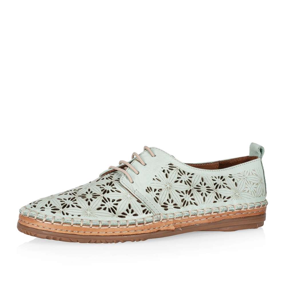 Tyto lehoučké polobotky IBERIUS budou tou správnou volbou pro každou z Vás. Svršek z hladké kůže je ozdoben zajímavým vzorem, který je doplněn perforováním. Pro snadné nazouvání a dokonalé přizpůsobení dle Vašich požadavků slouží šněrování gumičkou. Měkká kožená stélka bude dokonalým společníkem na pochůzkách městem i cestě do práce.