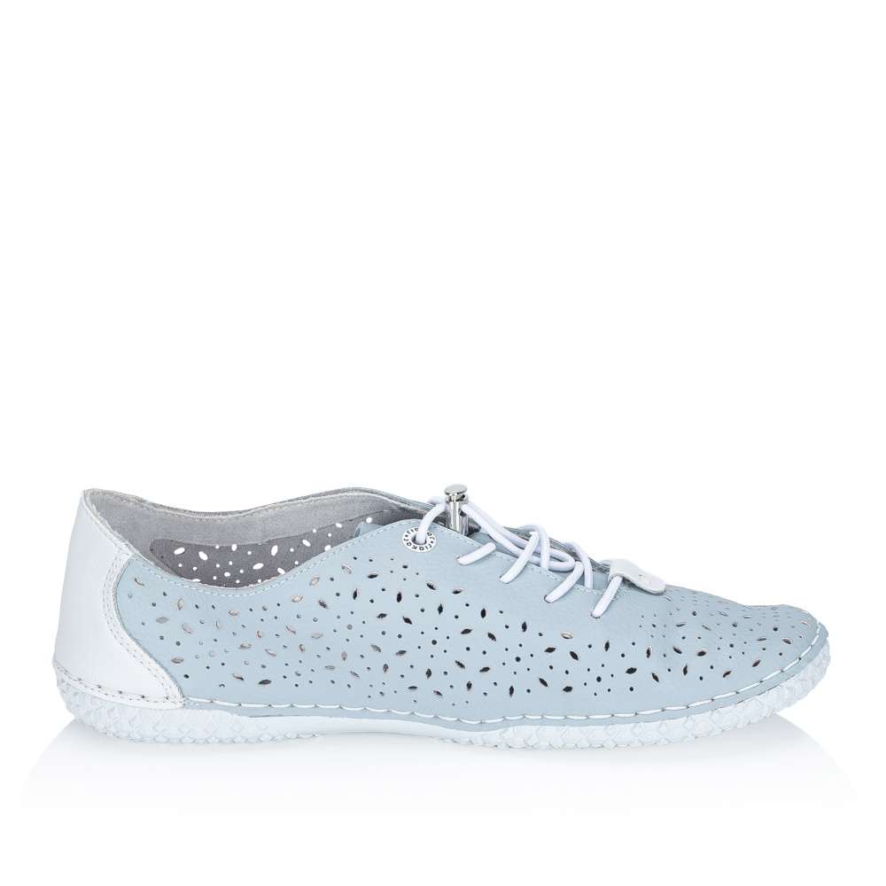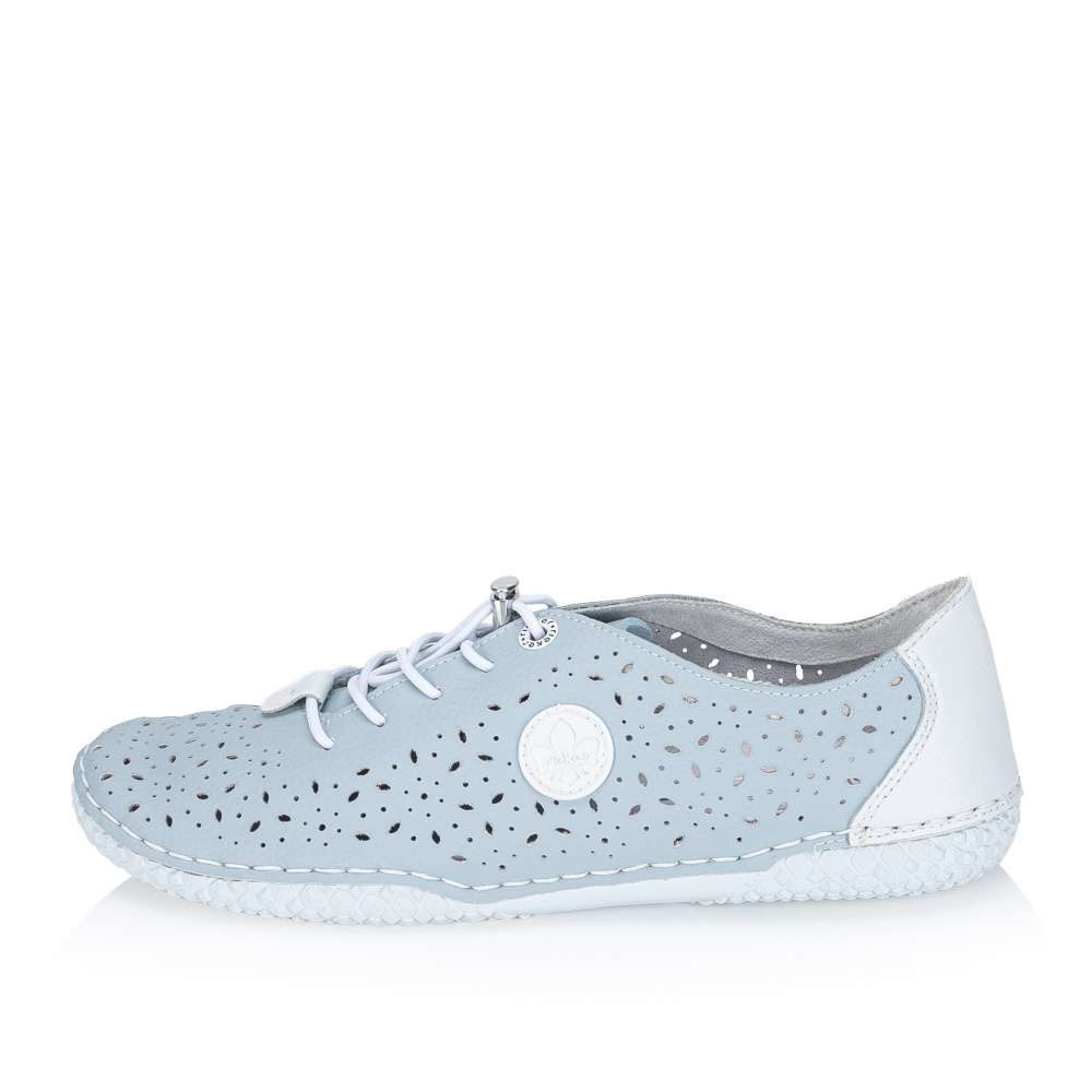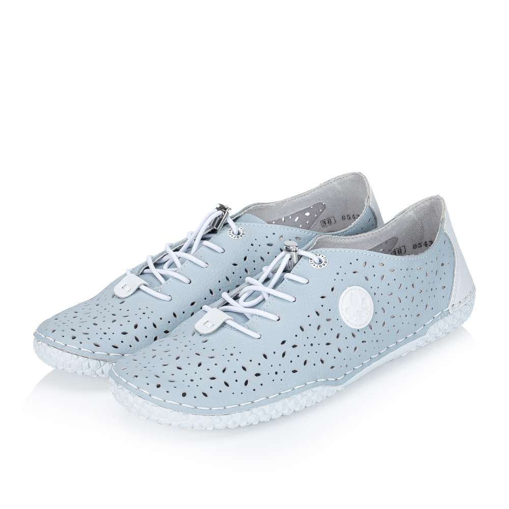 Dodejte svému kroku lehkost a přirozený pohyb s těmito dámskými botami v jemném světle modrém odstínu. Prodyšný perforovaný svršek zajišťuje skvělou ventilaci i v teplých dnech, zatímco měkká a flexibilní podrážka podporuje přirozené odvíjení chodidla. Praktické elastické šněrování s rychloupínáním umožňuje pohodlné nazutí a kontrastní bílý detail na patě dodává botám svěží, sportovní vzhled. Ideální volba pro každodenní nošení, kdy chcete spojit komfort, volnost pohybu a moderní styl.