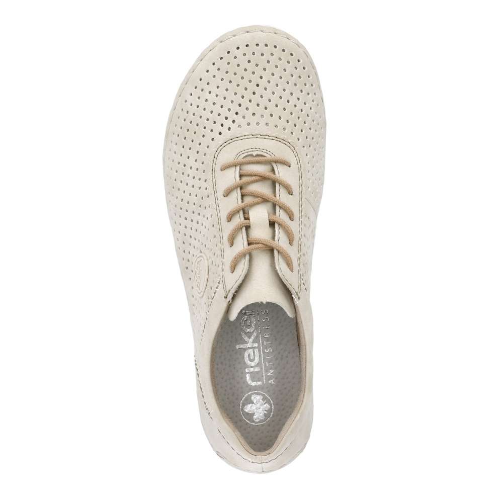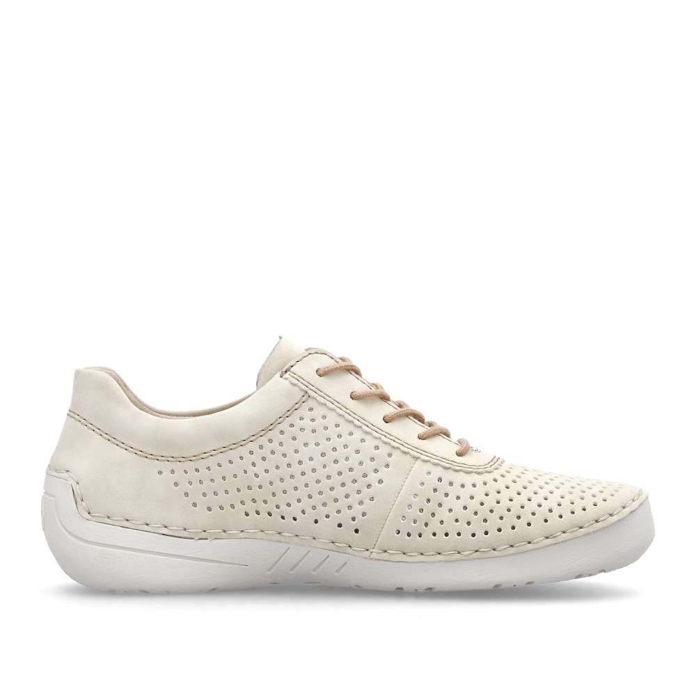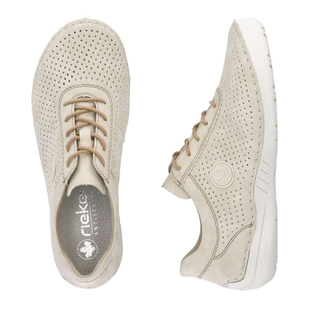 Objevte lehkost a eleganci s teniskami od značky Rieker, tyto tenisky se vyznačují jemným perforovaným vzorem, který dodává obuvi designový vzhled. Šněrování hnědou šňůrkou zajistí snadné nazutí a dokonalé upravení individuálním požadavkům. Flexibilní podrážka zajišťuje pohodlný pohyb, zatímco měkká stélka dodává celodenní komfort. S těmito teniskami budete nejen stylově vypadat, ale také se budete cítit pohodlně během celého dne. Technologie: Antistress – podešev je díky této technologii lehká, flexibilní, absorbuje nárazy při došlapu a snadno se přizpůsobí každé noze.