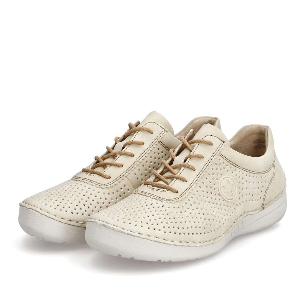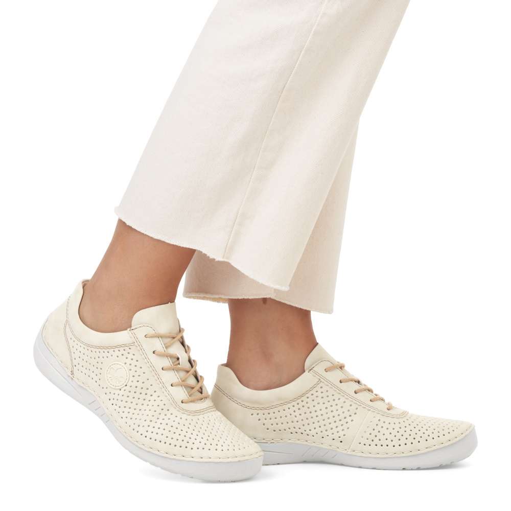 Detailní informace Objevte lehkost a eleganci s teniskami od značky Rieker, tyto tenisky se vyznačují jemným perforovaným vzorem, který dodává obuvi designový vzhled. Šněrování hnědou šňůrkou zajistí snadné nazutí a dokonalé upravení individuálním požadavkům. Flexibilní podrážka zajišťuje pohodlný pohyb, zatímco měkká stélka dodává celodenní komfort. S těmito teniskami budete nejen stylově vypadat, ale také se budete cítit pohodlně během celého dne.