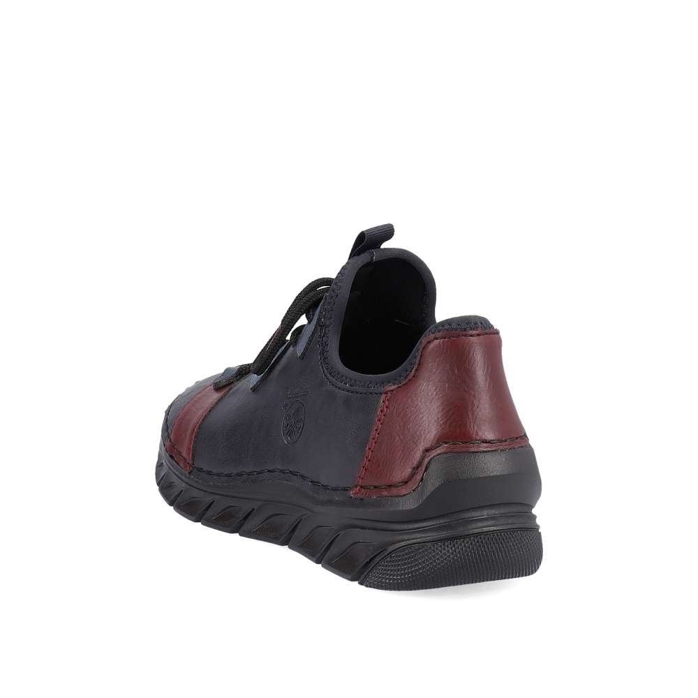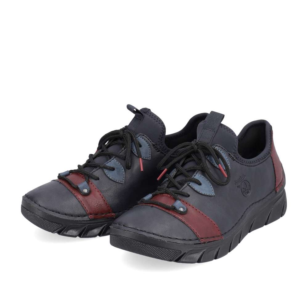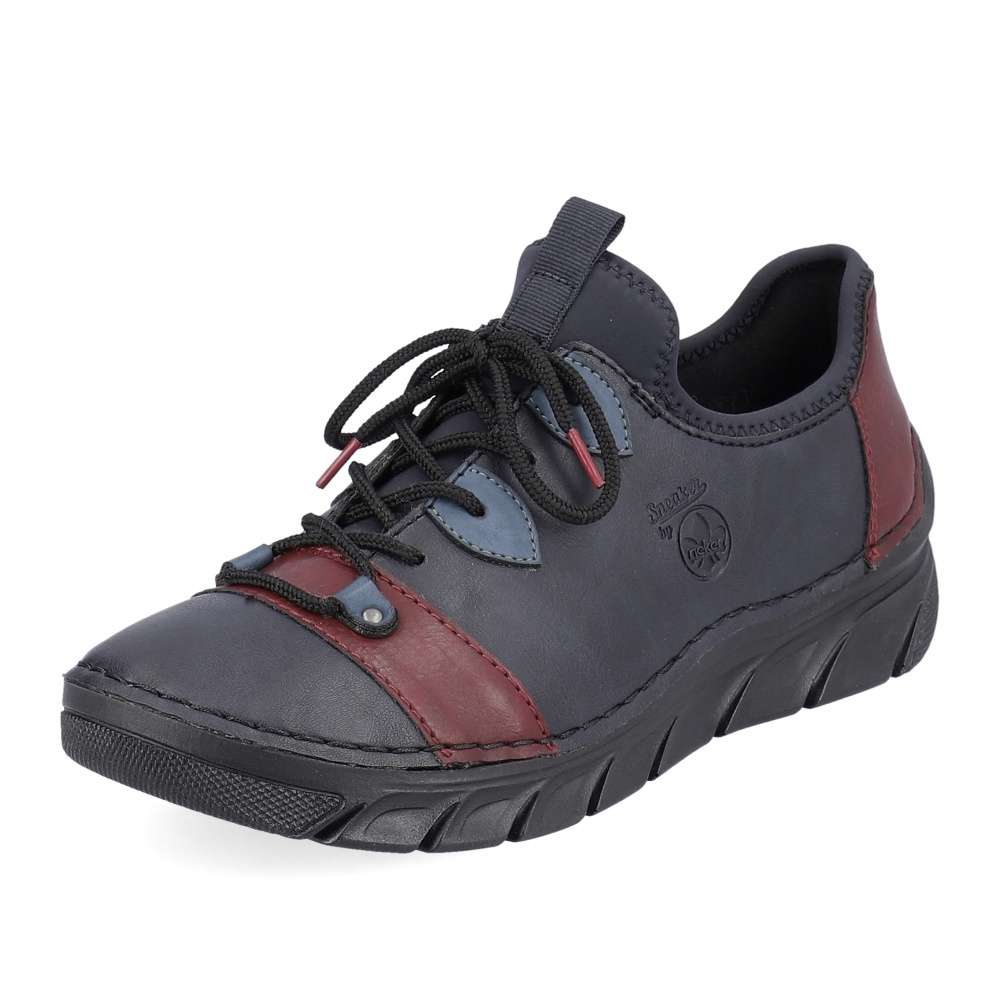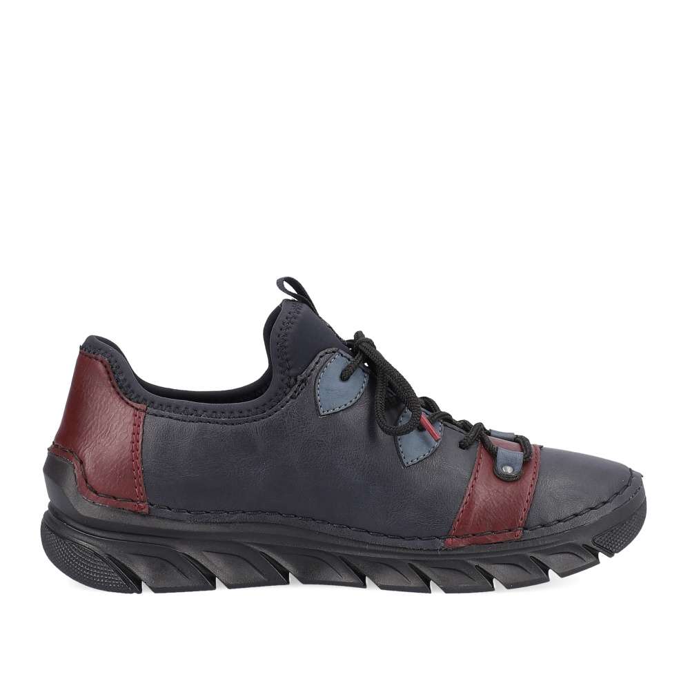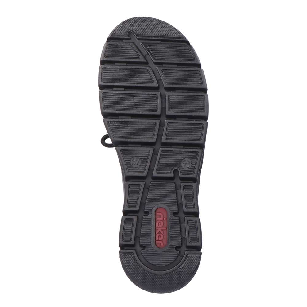 Každá žena může chodit v pohodlné obuvi, proto si tato dámská obuv značky RIEKER zaslouží pozornost nejedné ženy. Tmavý svršek je zdoben barevnými prvky a vytištěným logem značky. Velkou výhodou je elastická část v oblasti horního okraje, díky které se Vám do boty bude snazší dostávat. K těmto botám si můžete vzít Vaše pohodlné kalhoty nebo sukni a vyrazit buď do města nebo do práce. Technologie: Antistress – podešev je díky této technologii lehká, flexibilní, absorbuje nárazy při došlapu a snadno se přizpůsobí každé noze.