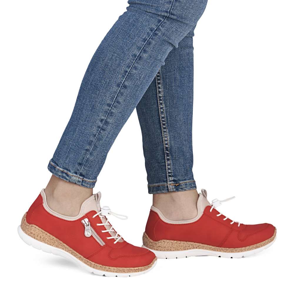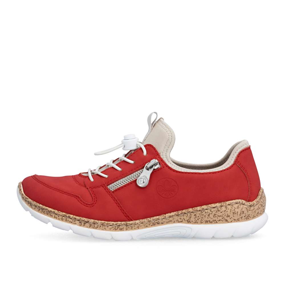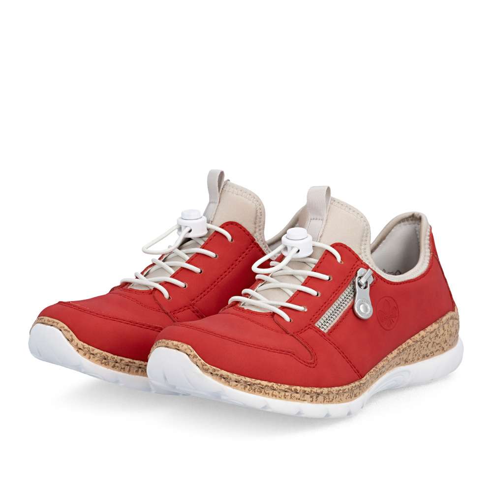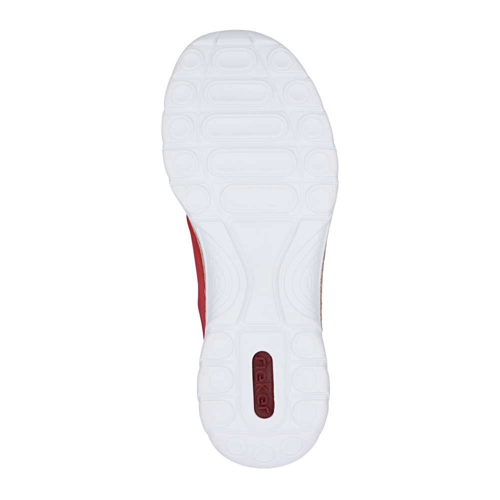 Detailní informace Představte si den, kdy každý váš krok je pohodlný, lehký a stylový zároveň. Tyto červené tenisky RIEKER s jemným prošíváním a vytištěným logem značky jsou ideálním společníkem vašich městských dobrodružství. Stříbrný zip a dekorativní gumička se stahovacím prvkem dodávají botám moderní vzhled, zatímco pružný materiál v horní části zajišťuje rychlé a snadné obouvání. Měkká textilní stélka z paměťové pěny se dokonale přizpůsobí tvaru vašeho chodidla a z každého kroku udělá pohodlný a příjemný zážitek. Pružná podešev s technologií Antistress tlumí nárazy, podporuje přirozený pohyb a zajišťuje komfort při celodenním nošení - ideální do práce, na nákupy nebo na procházku městem. Tyto tenisky nejsou jen obyčejnou obuví – jsou kombinací stylu, kvality a pohodlí, která dokáže oživit každý outfit a rychle se stane vaším oblíbeným kouskem v šatníku. Obujte si RIEKER a nechte každý krok zářit!
