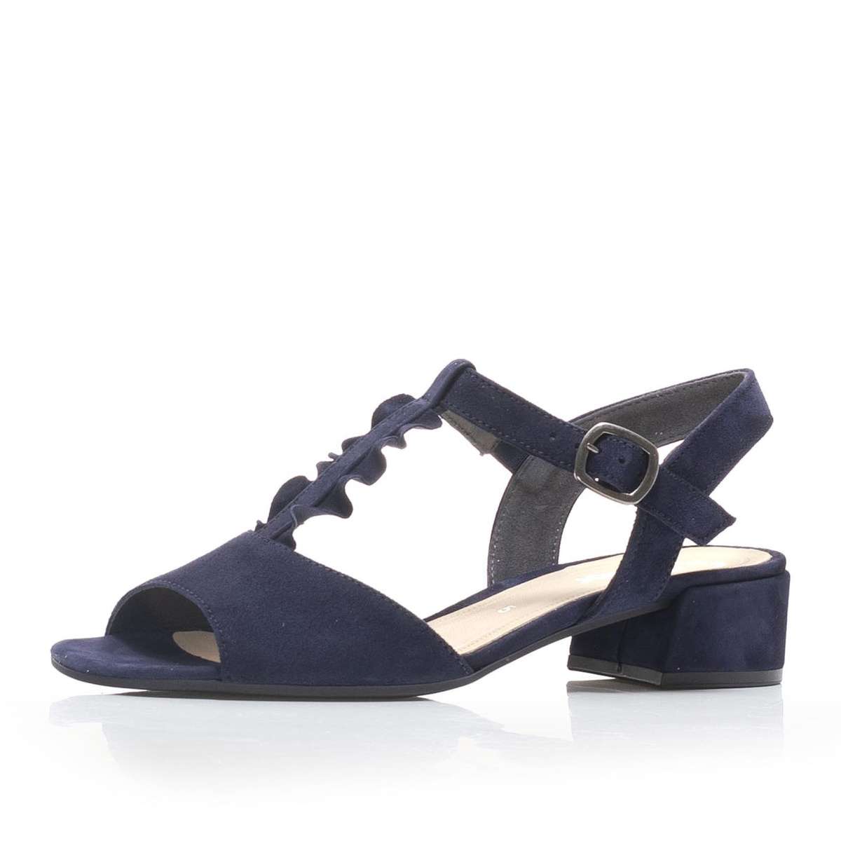 Dámské sandály šité z pravé kůže jsou zdobené volánky na nártu. Mají semišový vzhled a kulatou špičku. Na vnitřní straně je pružná gumička a na vnější straně zapínání přezkou pro dokonalou úpravu dle Vašich požadavků. Tento model dokonale doladí každý Váš outfit do práce či do města.
