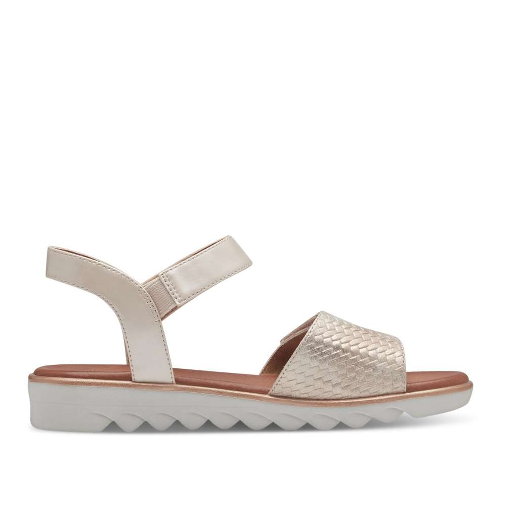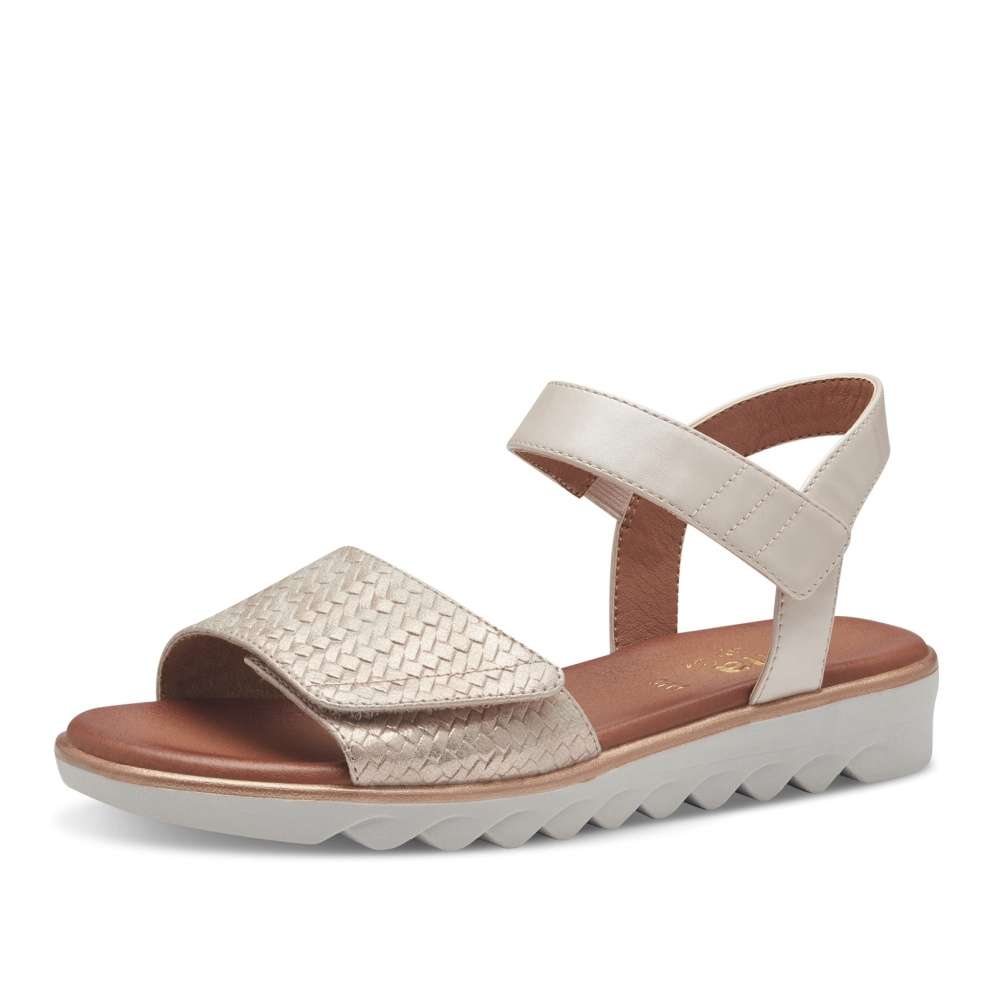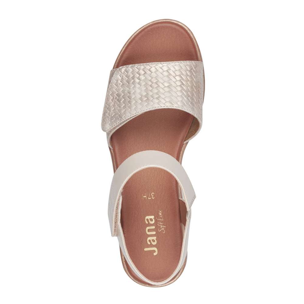 Objevte šarm a pohodlí s těmito zlatavě lesklými sandálky od značky Jana. Každý krok bude zářit díky jejich elegantnímu designu. Dva pásky jsou vybaveny suchými zipy, který zajistí pohodlné zapínání, a navíc je přední pásek zdoben decentním vzorem, který dodává sandálkům jedinečný vzhled. Vyšší podešev nejenže přidává sandálkům na výšce a eleganci, ale také poskytuje extra pohodlí při chůzi. Tato kombinace stylu a komfortu činí tyto sandálky ideální volbou pro různé příležitosti, od denního nošení po večerní vycházky. Jsou skvělým doplňkem letního šatníku a jistě přilákají pozornost svým jedinečným designem. Technologie: SoftLine – boty s touto technologií mají lehké, měkké a současně mimořádně flexibilní podešve, použitím speciálních materiálu a jedinečného složení podešve byl vyvinut nový druh flexibility.