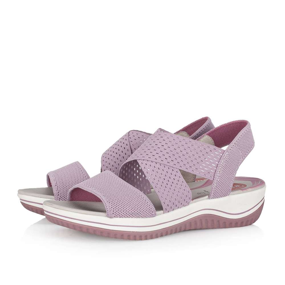 Originální sandály JANA budou pohodlným a stylovým doplňkem Vašeho vzhledu. Dva překřížené pásky na nártu a jeden na zadní straně boty z elastického materiálu Vaši nožku dokonale obepne. Měkká stélka a vyšší podešev zpříjemní procházky i cestu do práce. Tyto sandálky nabízíme ve více barevných variantách. Koupí těchto bot zajisté nebudete litovat. Tyto sandály zaručeně skombinujte s Vašimi letními outfity a skvěle budou vypadat třeba i s delší sukní. Technologie: Relax FIT – vyměkčené místo pod patou pro pohodlný došlap, tzv. shock point, snižuje nárazy na patu a její zatížení, čímž zpříjemňuje chůzi a snižuje únavu nohy.