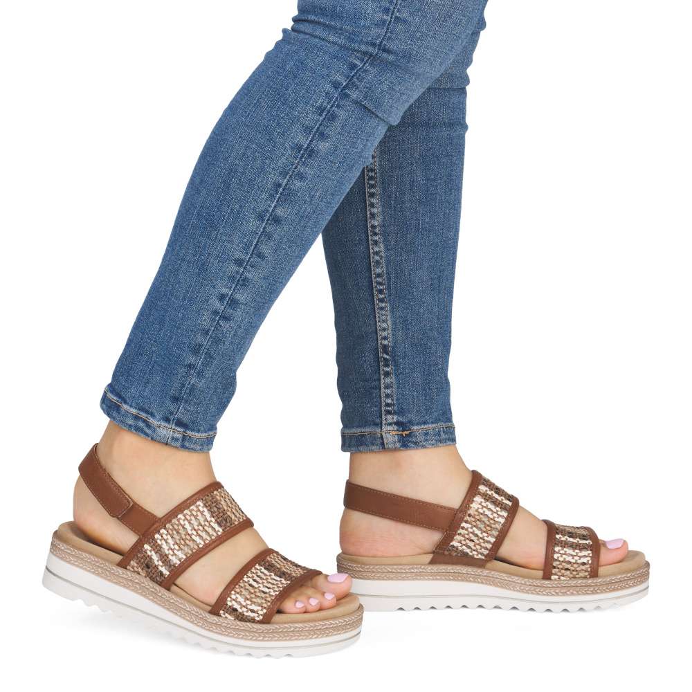 Obuv REMONTE představuje prémiovou řadu značky RIEKER, která se vyznačuje vysokou kvalitou použitých materiálů a precizním zpracováním. Kráčejte létem s lehkostí a jedinečným stylem v sandálech značky Rieker, které si zamilujete na první krok. Efektní struktura materiálu svršku a širší pásky vytvářejí moderní, výrazný vzhled a zároveň zajišťují stabilitu chodidla. Zadní pásek je opatřen praktickým suchým zipem, díky kterému si sandály jednoduše přizpůsobíte dle potřeby. Příjemná textilní stélka je vyjímatelná a dopřeje vám měkký komfort během celého dne a vyšší podešev poskytne spolehlivé pohodlí při každém kroku. Tyto sandály jsou dokonalým spojením letní elegance, pohodlí a moderního designu.