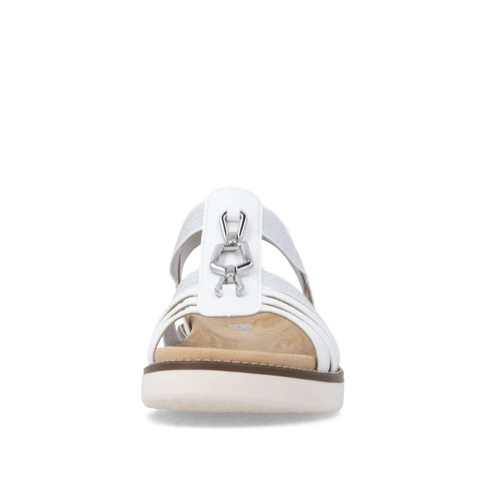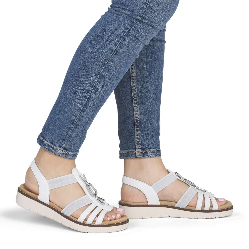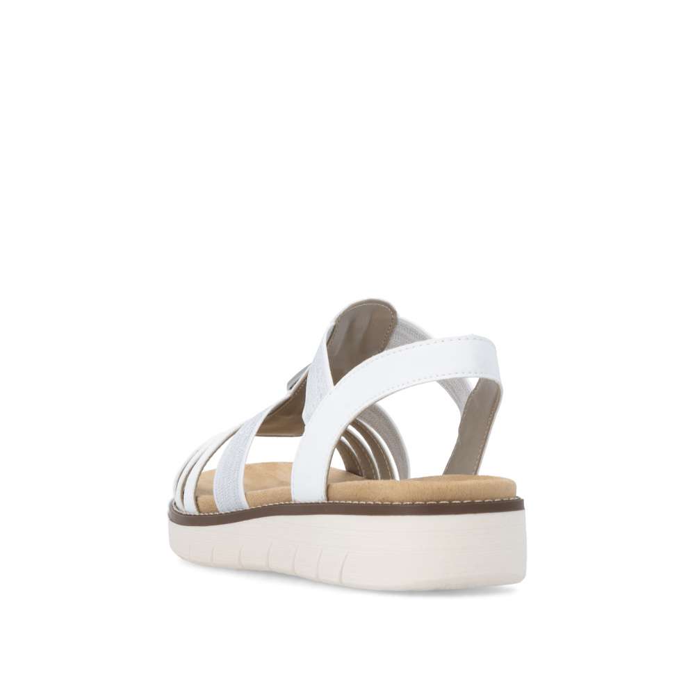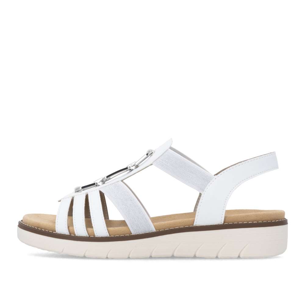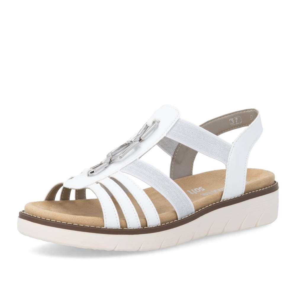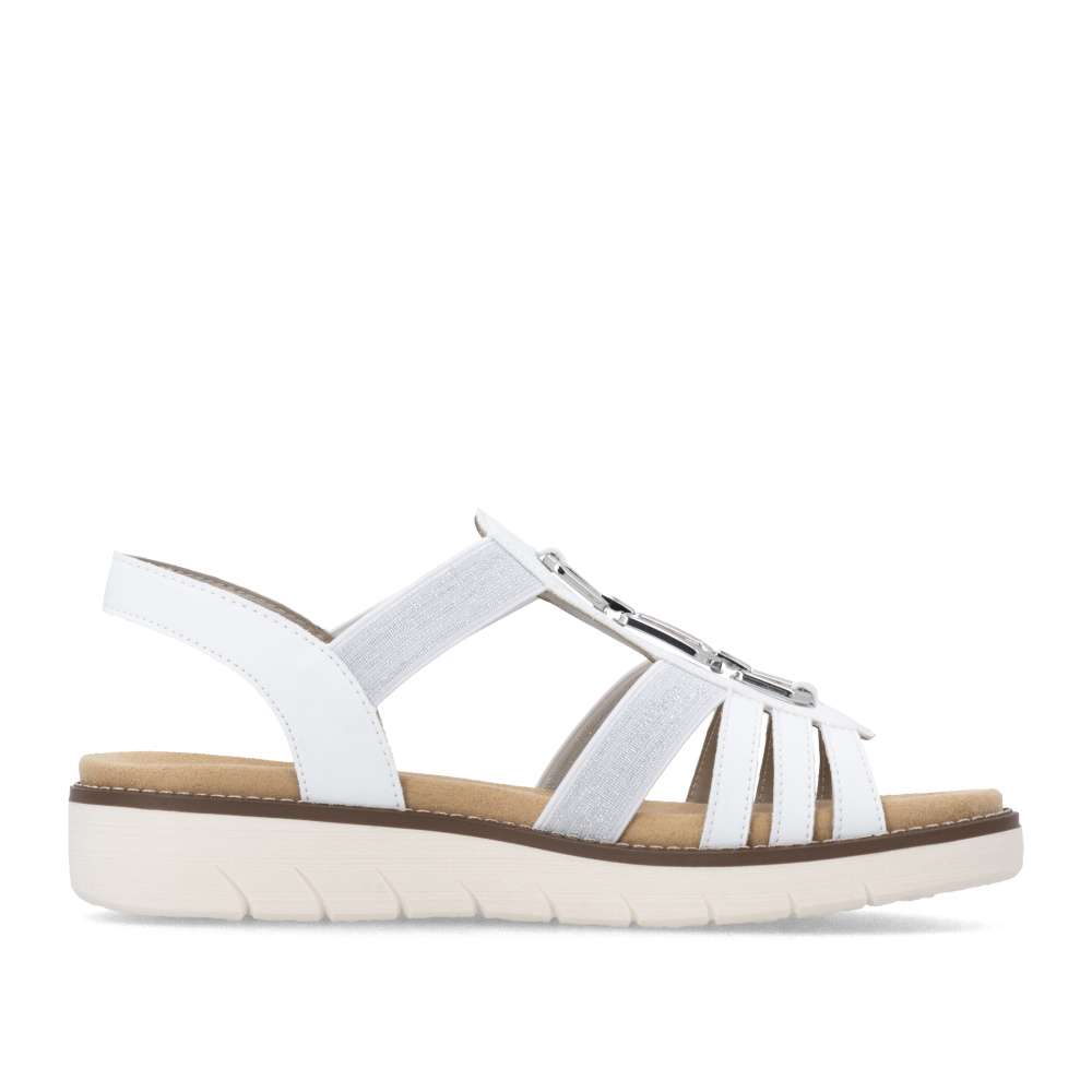 Obuv REMONTE představuje prémiovou řadu značky RIEKER, která se vyznačuje vysokou kvalitou použitých materiálů a precizním zpracováním. Pohodlí v módním stylu značky RIEKER – přesně to přinášejí tyto sandály, které jsou navrženy pro ženy milující komfort a elegantní vzhled zároveň. Svršek je tvořen promyšlenou skladbou pevných a pružných pásků, které se dokonale přizpůsobí tvaru chodidla a při chůzi poskytnou potřebnou stabilitu. Středovou část nártu zdobí půvabná aplikace ve stříbrné barvě, která sandálům dodává ženský a jemně luxusní nádech. Tento detail skvěle oživuje světlé provedení a zvyšuje jejich celkovou atraktivitu. Uvnitř se nachází textilní vyjímatelná stélka, která je příjemná na dotek a poskytuje komfort i během delšího nošení. Sandály doplňuje vyšší podešev, která zajišťuje oporu a zvyšuje pohodlí při chůzi. Díky její lehké a flexibilní konstrukci jsou ideální pro celodenní nošení – do města, do práce i pro volný čas. Tyto sandály RIEKER představují harmonické spojení stylu a praktičnosti, které ocení každá žena hledající letní obuv s maximálním pohodlím a elegantním vzhledem.